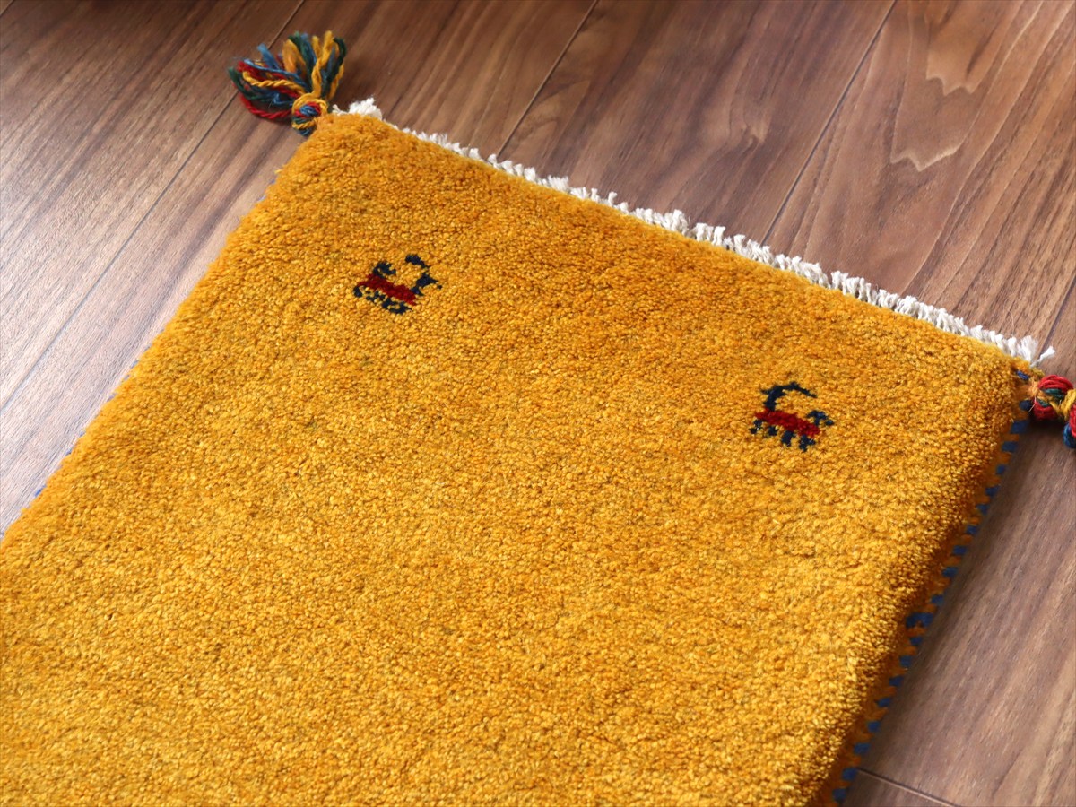 ギャッベ ミニギャベ イラン産 59×41cm イエローオレンジ 動物モチーフ