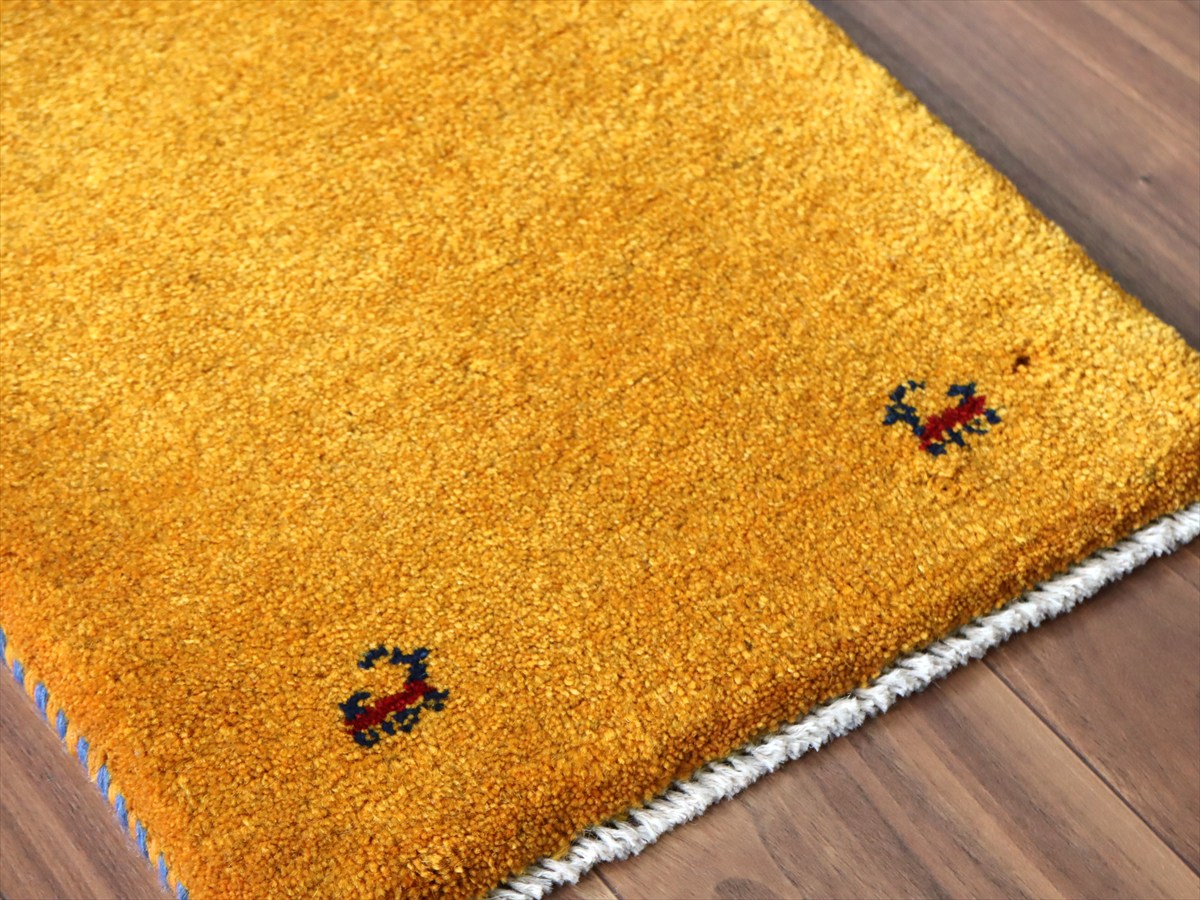 Key:ギャッベ,ギャベ,一点もの 現品販売 ラグ,ウール製,イラン,手織り,じゅうたん,絨毯,座布団, イエロー オレンジ 黄色 草木染, ガラタバザール Gabbeh, Handmade, Hand knotted, Tribal rug, Iran carpet, Wool, Natural Dye,