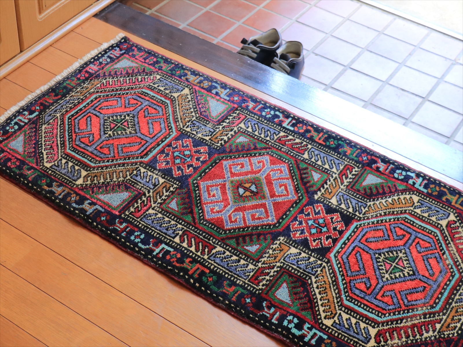 key:Tribal Rug, Antique Rug, Turkish Carpet, Antique collectable, Antique Rug Carpet トライバルラグ トルコ絨毯 部族絨毯 エリアラグ 手織り じゅうたん ヴィンテージ アンティーク トルコ 玄関マット 一点もの