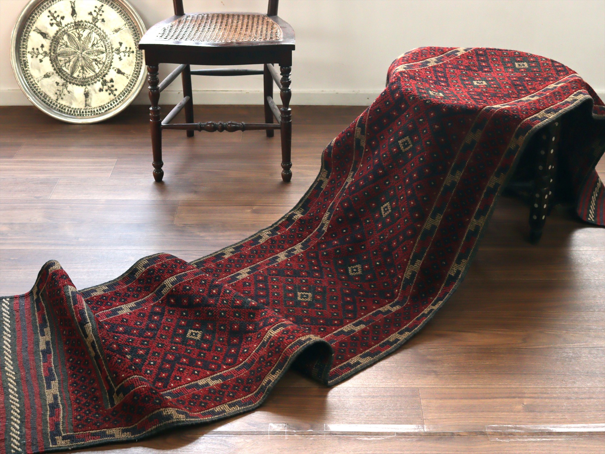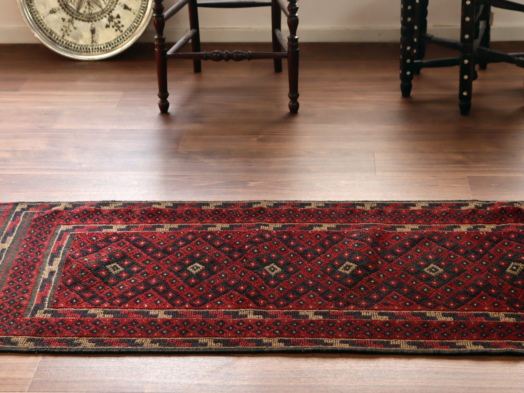 - オールドキリム アフガニスタン ミシュワニ275×64cm 幾何学模様 細長サイズ