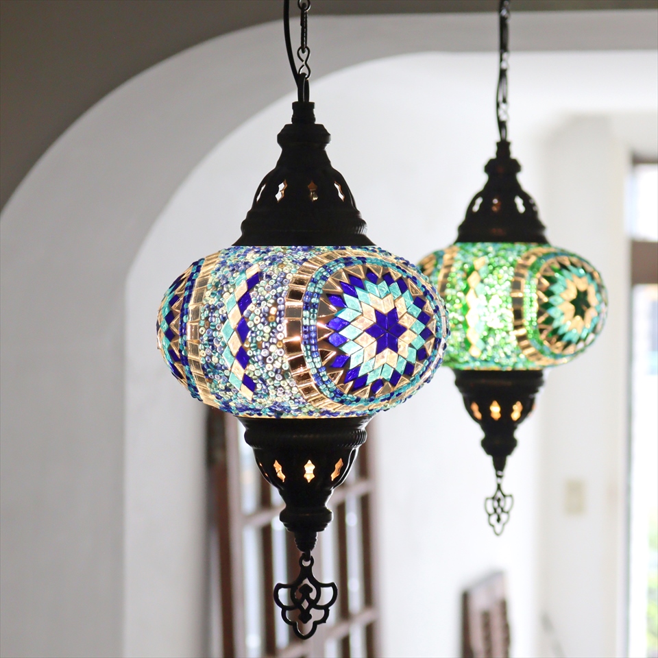 - トルコランプ モザイクランプ ペンダントランプ 直径16cm ブルー
