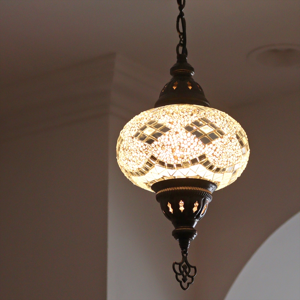 - トルコランプ モザイクランプ ペンダントランプ 直径16cm ホワイト
