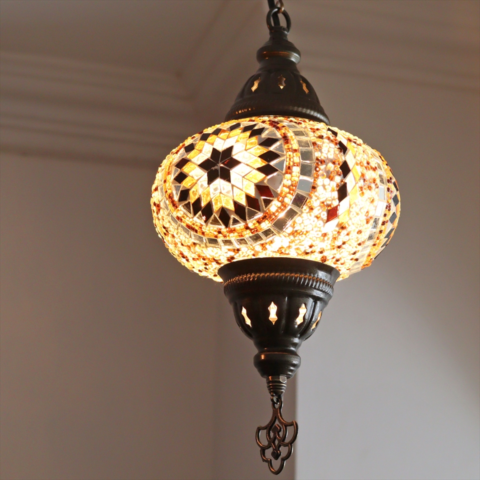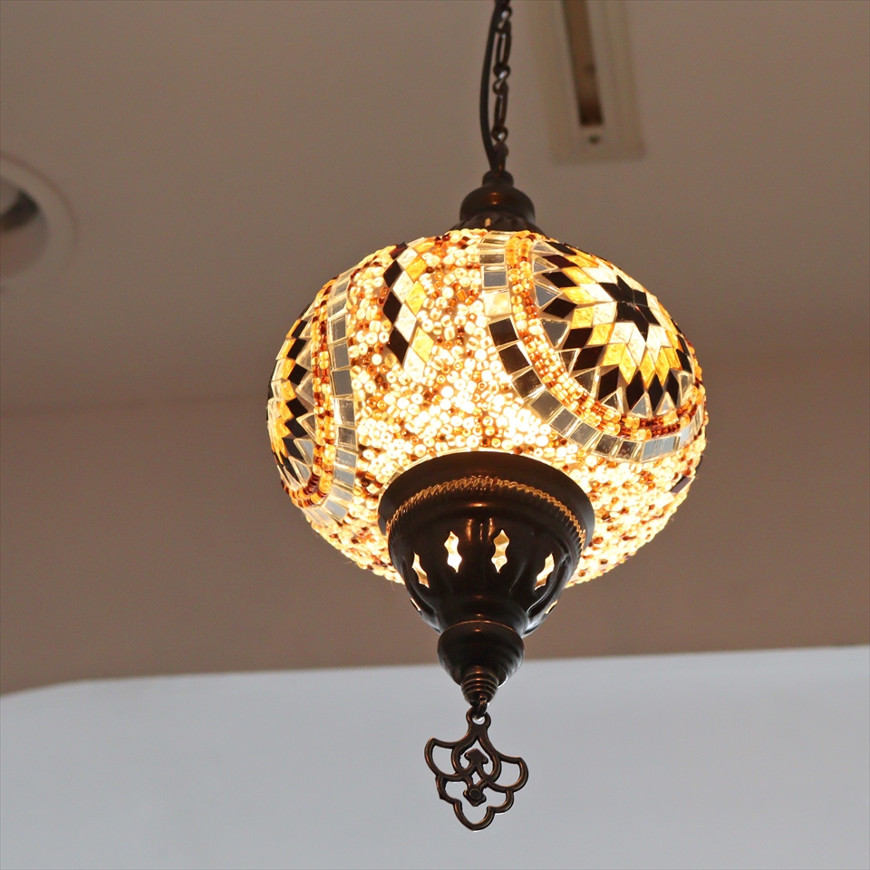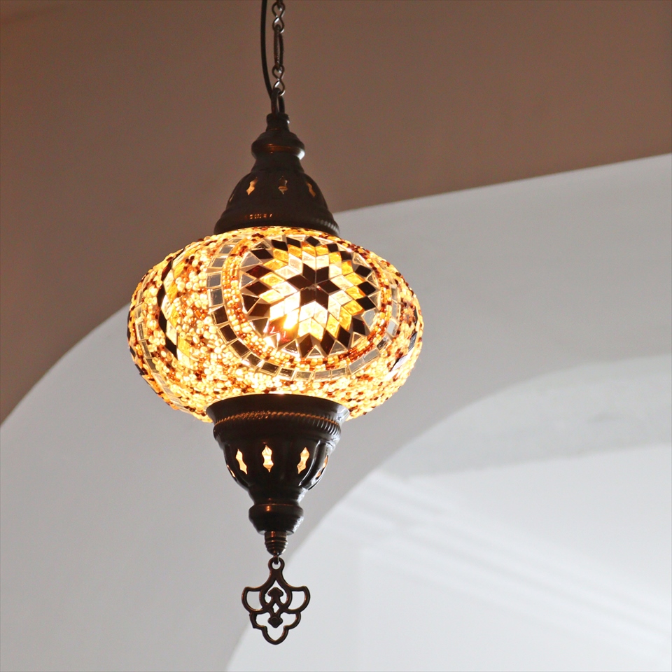 - トルコランプ モザイクランプ ペンダントランプ 直径16cm アンバー