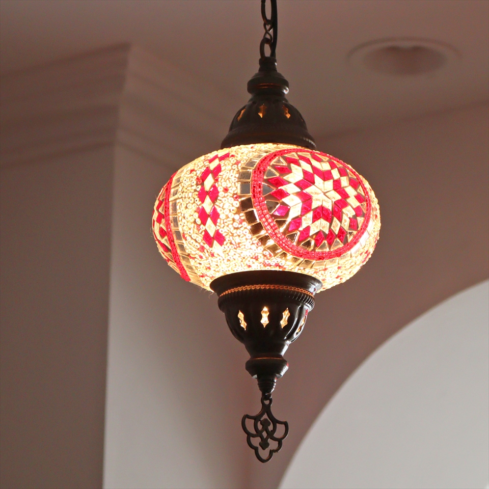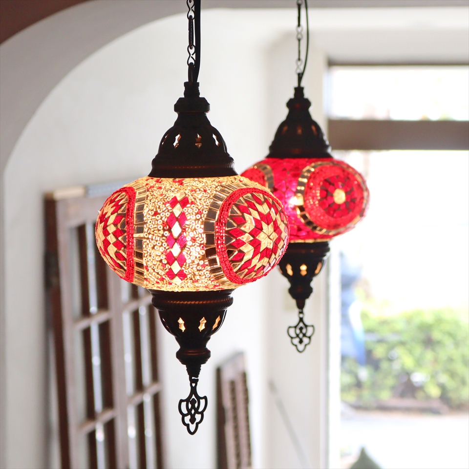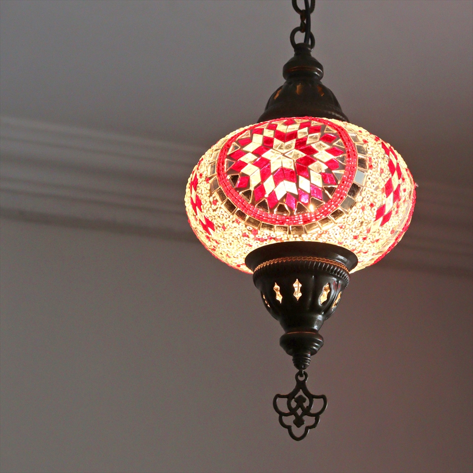 - トルコランプ モザイクランプ ペンダントランプ 直径16cm レッド