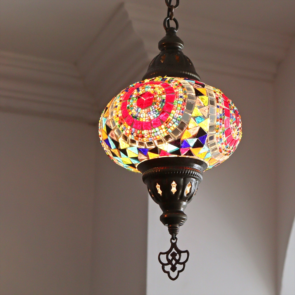 - トルコランプ モザイクランプ ペンダントランプ 直径16cm ミックスカラー