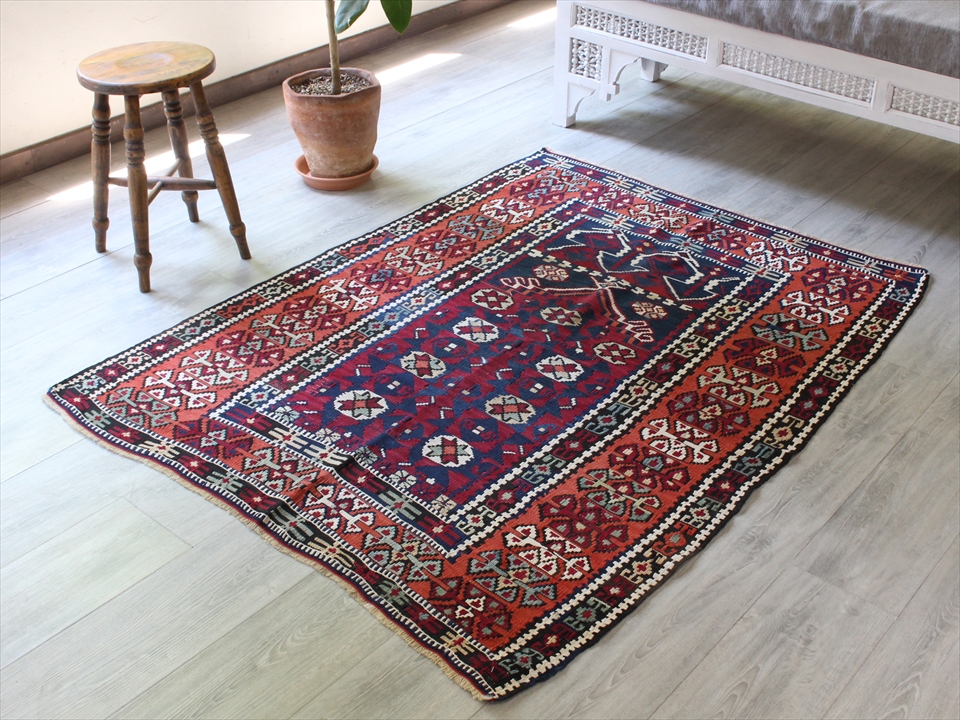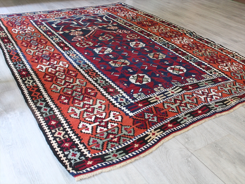 アンティークキリム チャンクル 151×116cm セッヂャーデ コチニールピンクのミフラープ