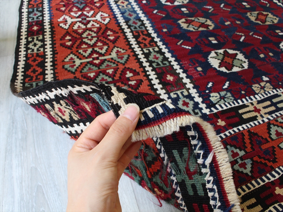 - アンティークキリム チャンクル 151×116cm セッヂャーデ コチニールピンクのミフラープ