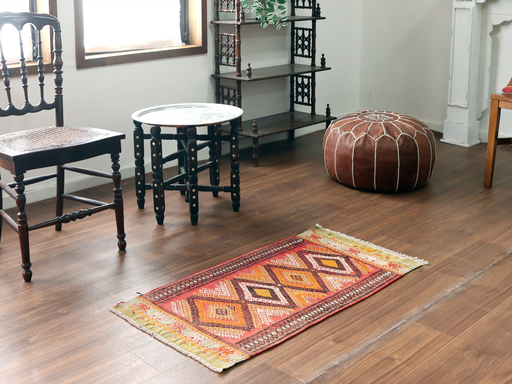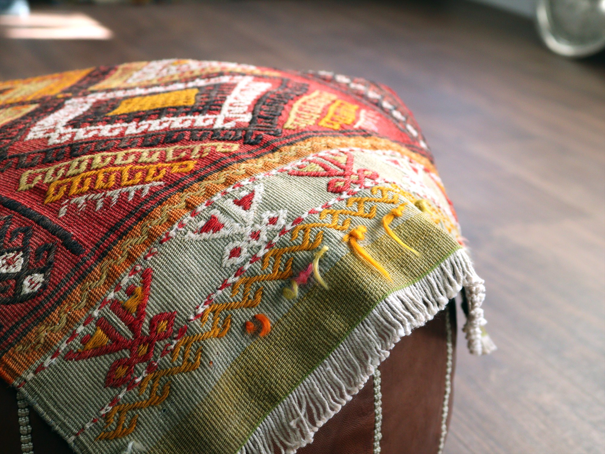 トルコ語で「枕」を意味するヤストゥクは、一般的にはクッションのように使われる細長の袋物のキリムです。もともとは、裏面にもキリムがあり、中綿に麦の穂などを入れて使うものですが、こちらは実際に縫い合わせてクッションとして使ったあとは見受けられません。