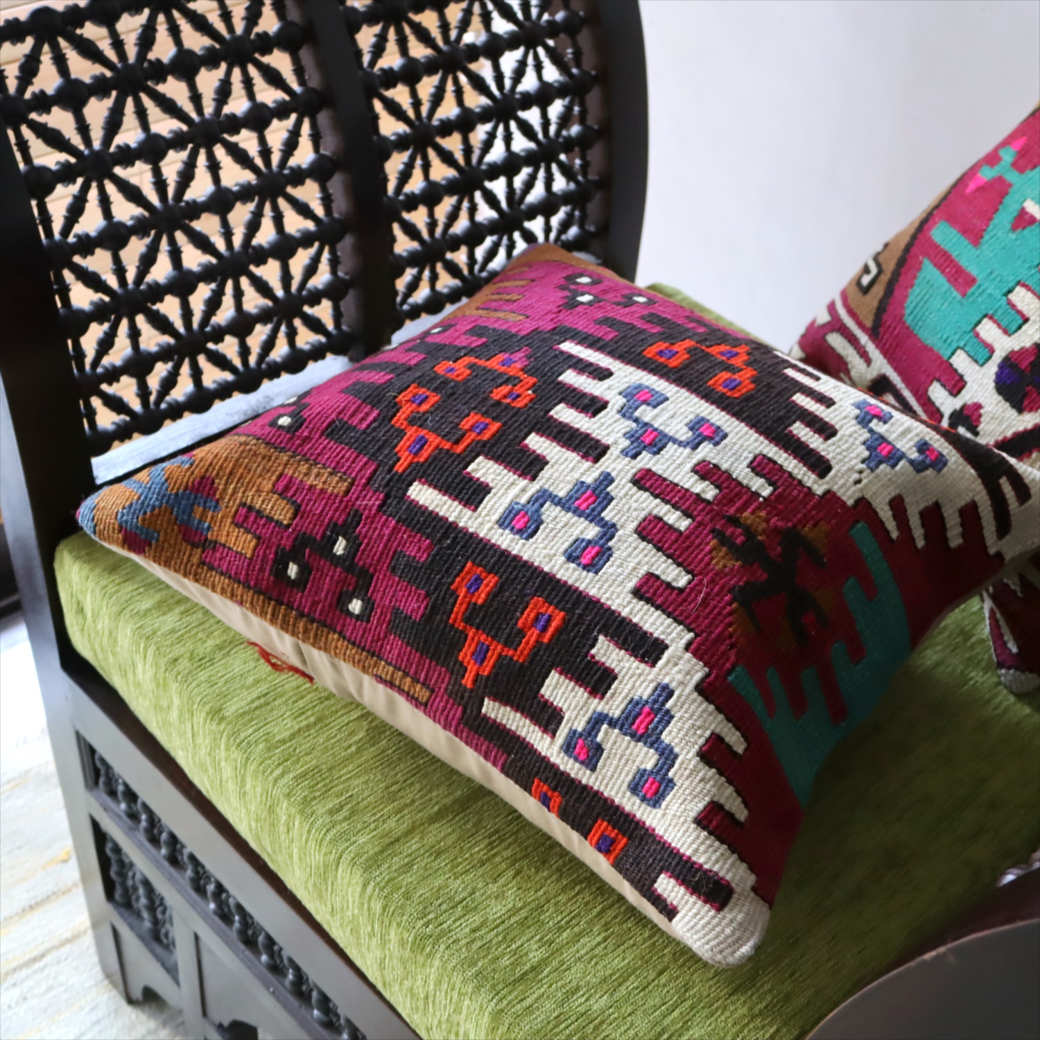 Key:Old Kilim, Kilim Cushion, Turkish Kilim, BOHO, Bohemian Decor, Vintage kilim, クッションカバー, オールドキリム, トルコ, ヴィンテージキリム, トライバルラグ, ピロー, ボヘミアンスタイル, BO-HO, ウール100%, 手織り, 一点もの, ガラタバザール