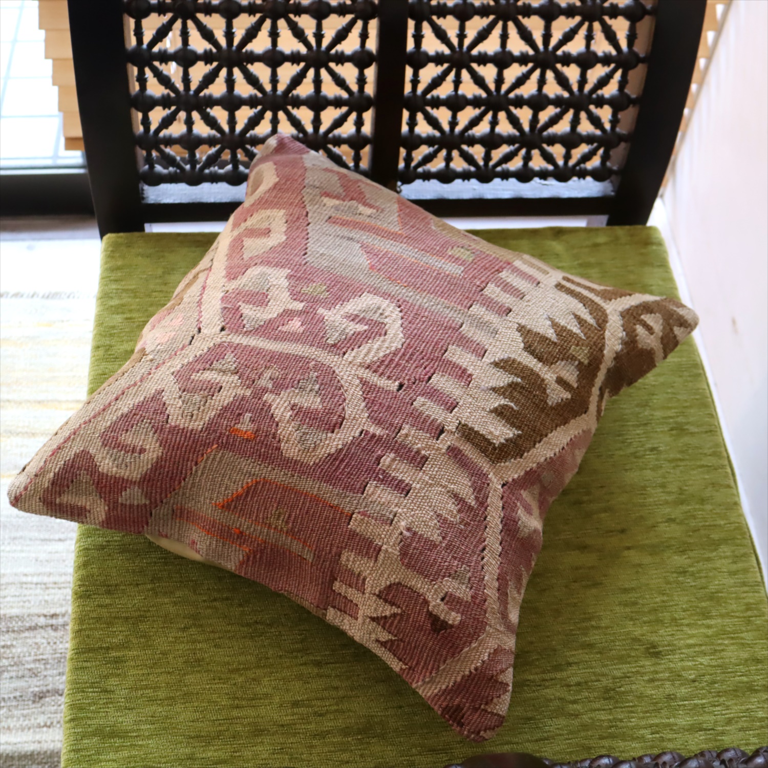Key:Old Kilim, Kilim Cushion, Turkish Kilim, BOHO, Bohemian Decor, Vintage kilim, クッションカバー, オールドキリム, トルコ, ヴィンテージキリム, トライバルラグ, ピロー, ボヘミアンスタイル, BO-HO, ウール100%, 手織り, 一点もの, ガラタバザール