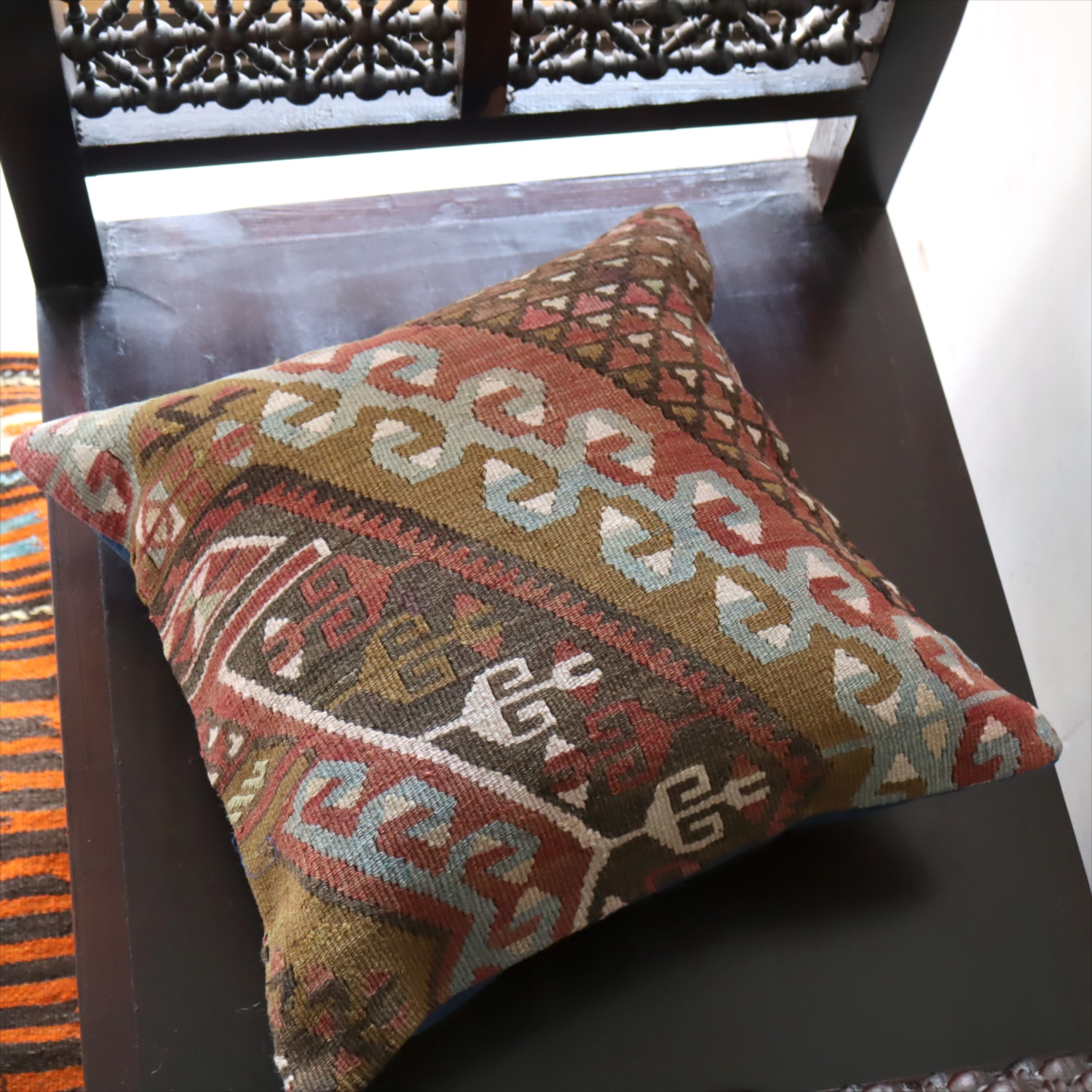 オールドキリム クッションカバー40×40cm カイセリ地方 チフカナットキリム