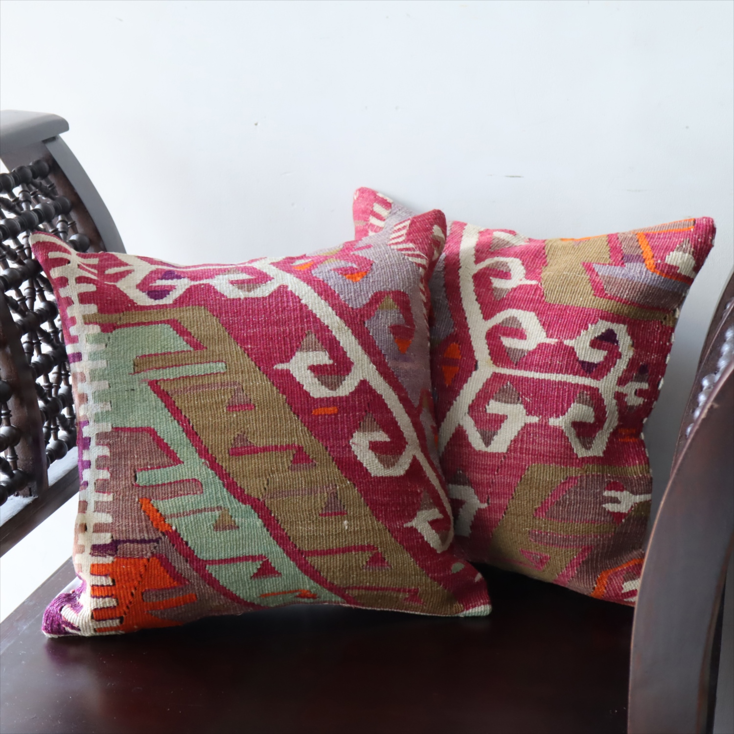オールドキリム クッションカバー40×40cm カイセリ地方 チフカナットキリム
