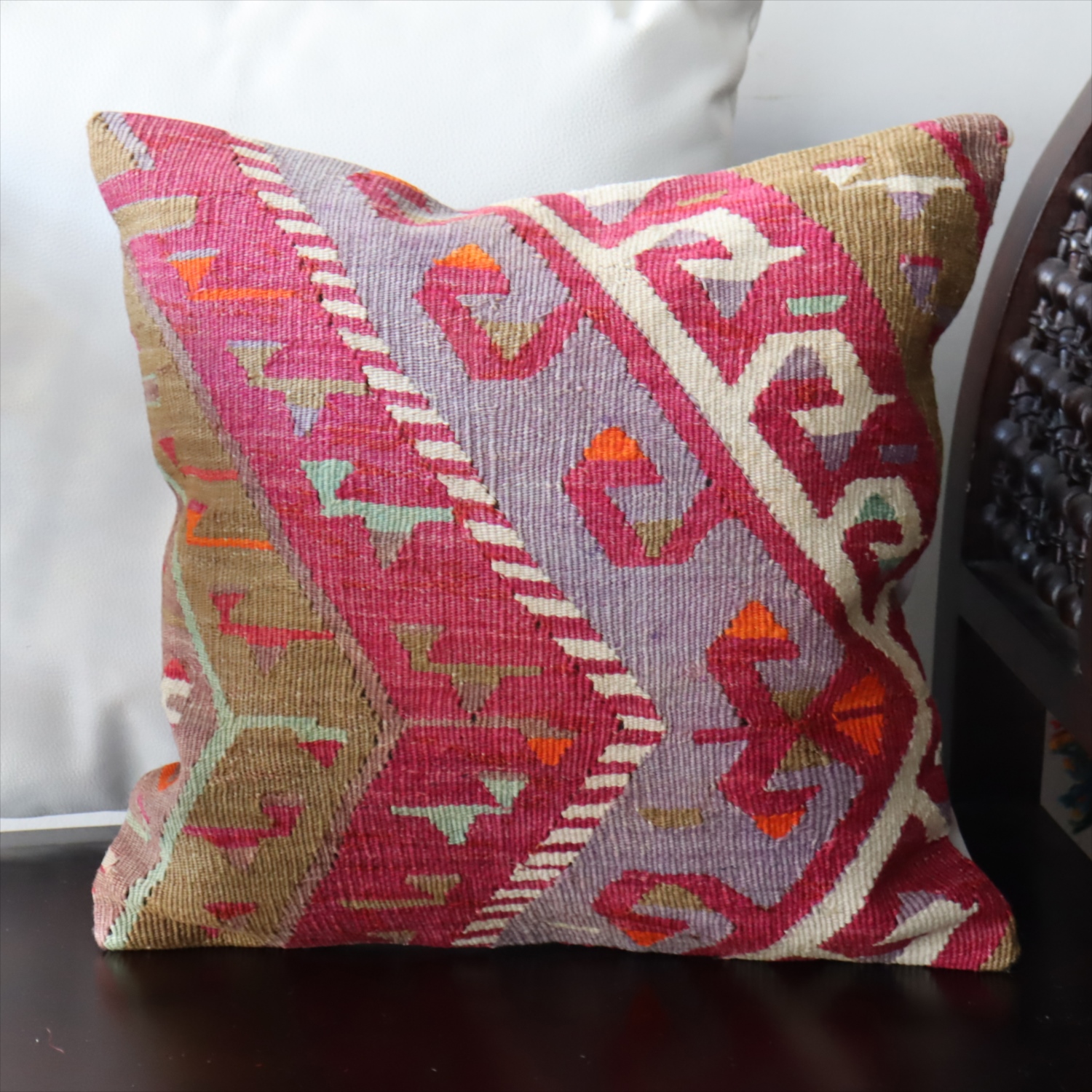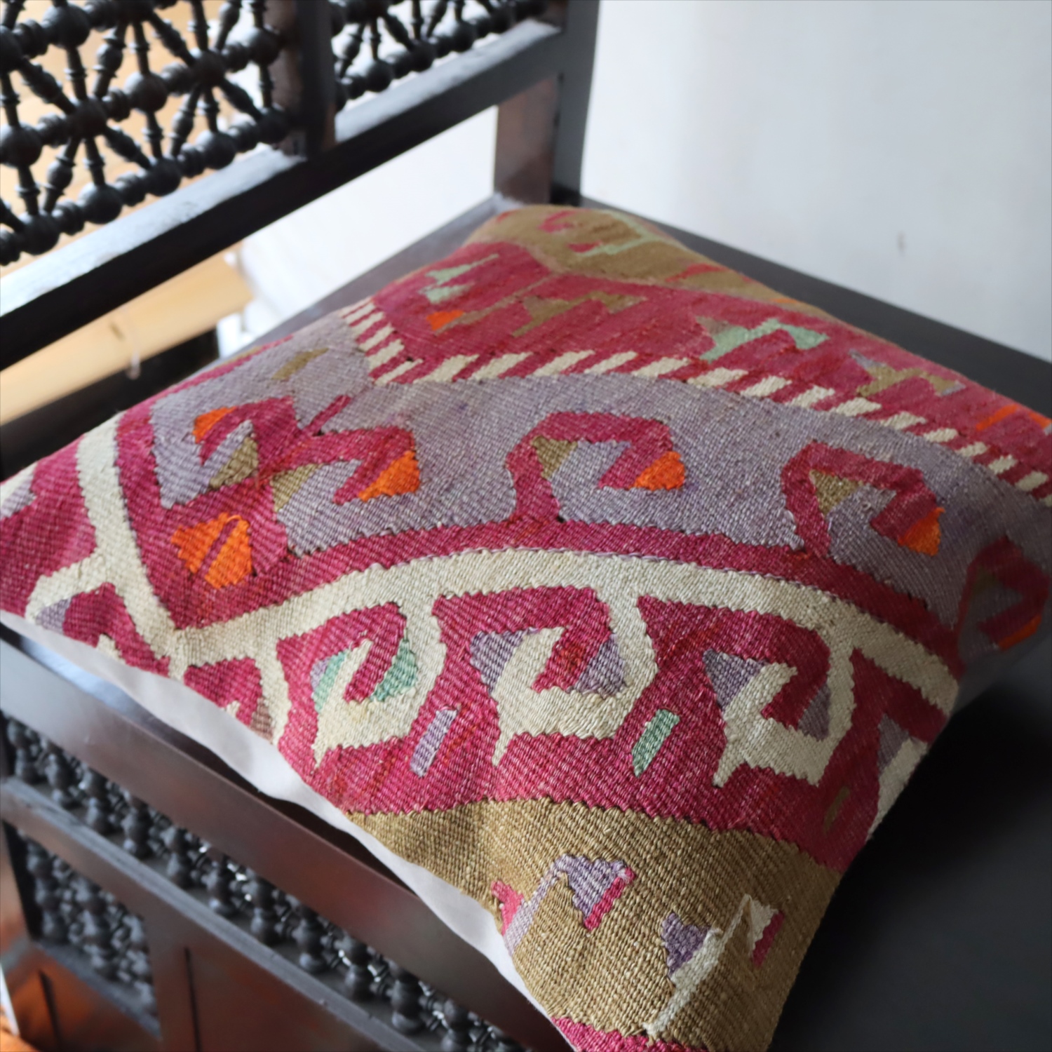 Key:Old Kilim, Kilim Cushion, Turkish Kilim, BOHO, Bohemian Decor, Vintage kilim, クッションカバー, オールドキリム, トルコ, ヴィンテージキリム, トライバルラグ, ピロー, ボヘミアンスタイル, BO-HO, ウール100%, 手織り, 一点もの, ガラタバザール