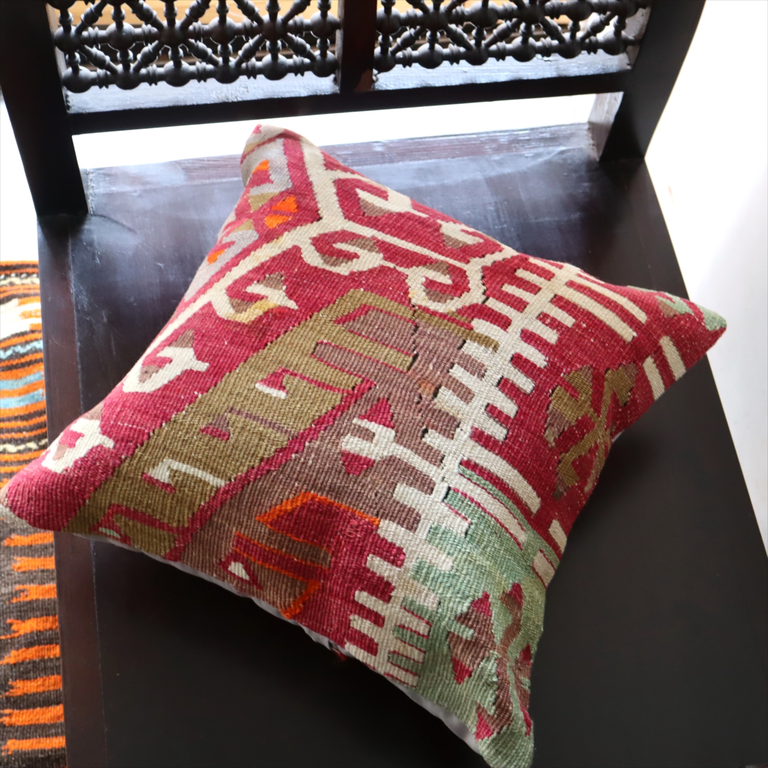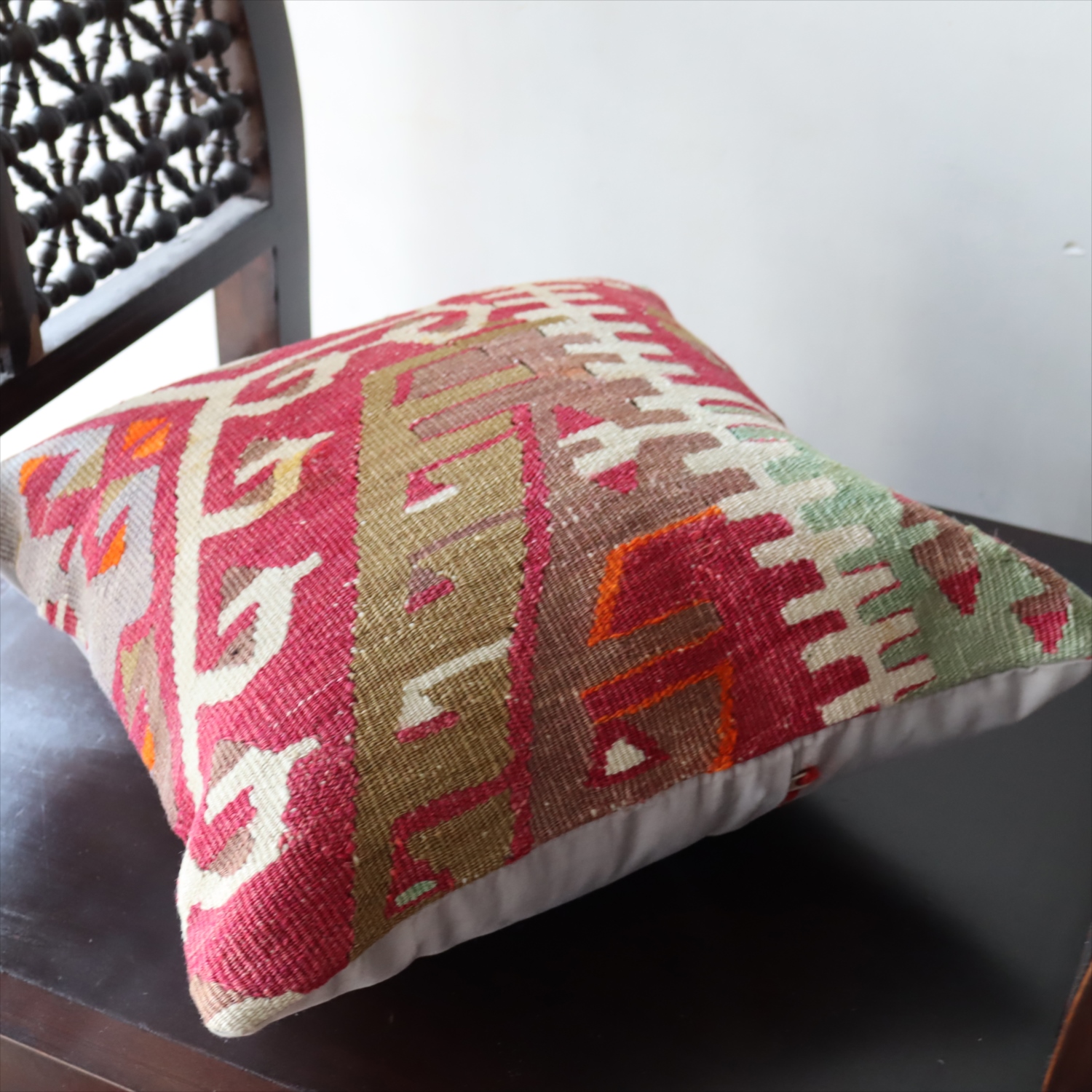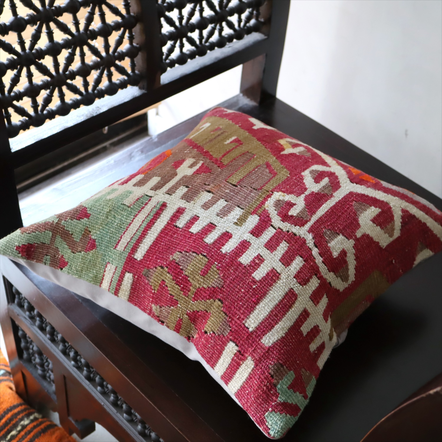Key:Old Kilim, Kilim Cushion, Turkish Kilim, BOHO, Bohemian Decor, Vintage kilim, クッションカバー, オールドキリム, トルコ, ヴィンテージキリム, トライバルラグ, ピロー, ボヘミアンスタイル, BO-HO, ウール100%, 手織り, 一点もの, ガラタバザール