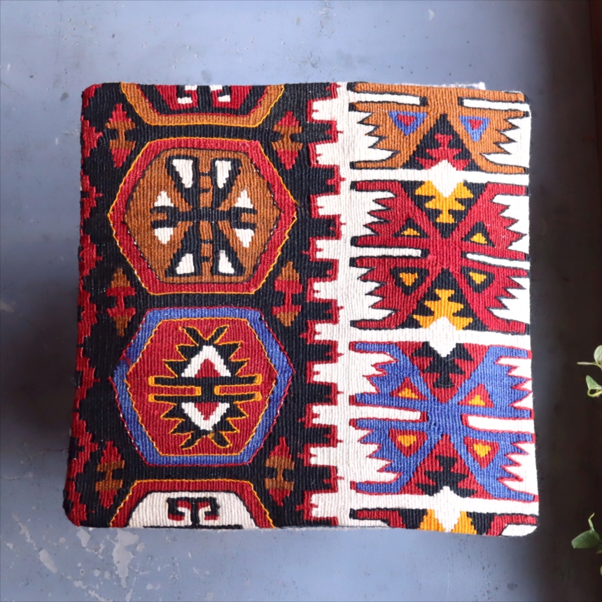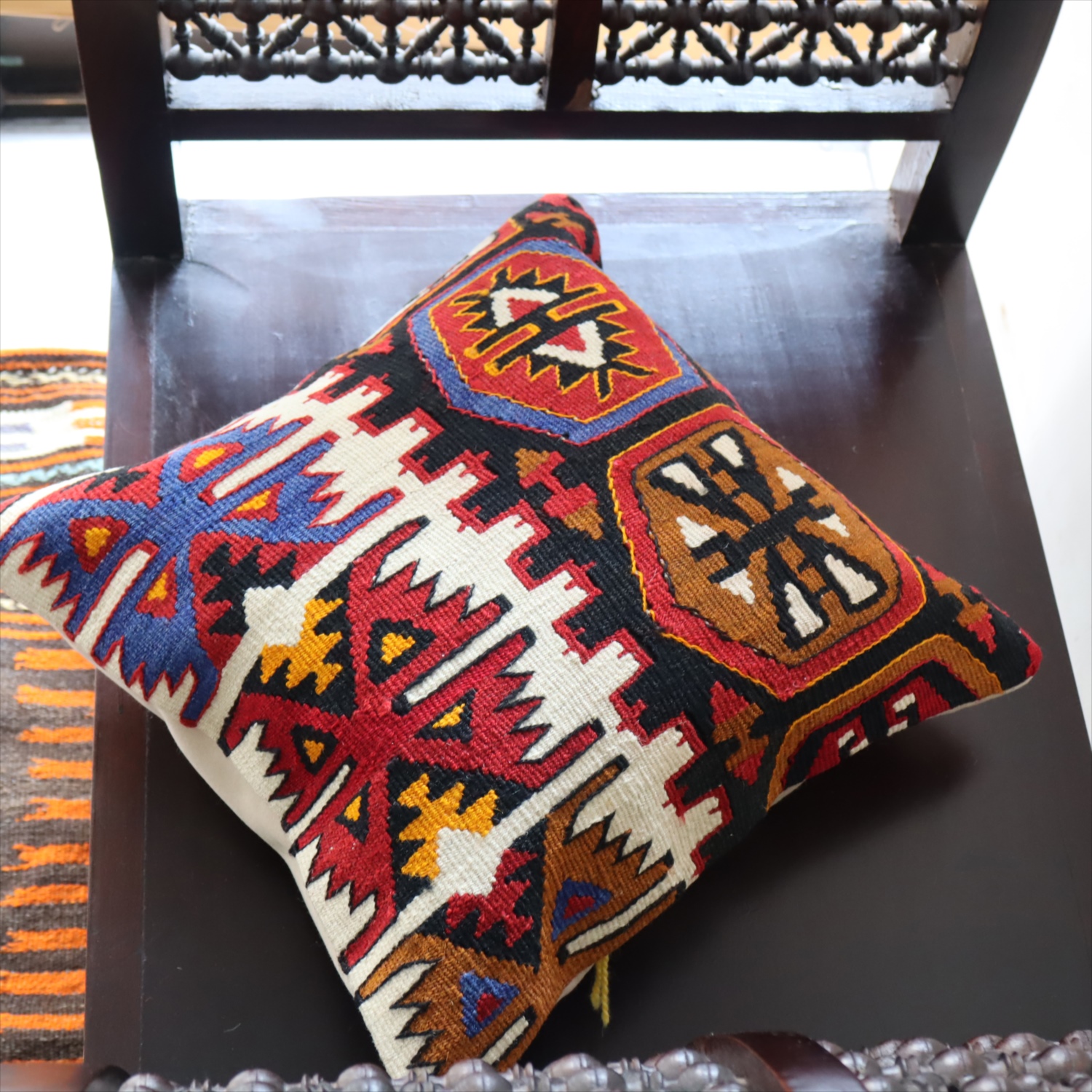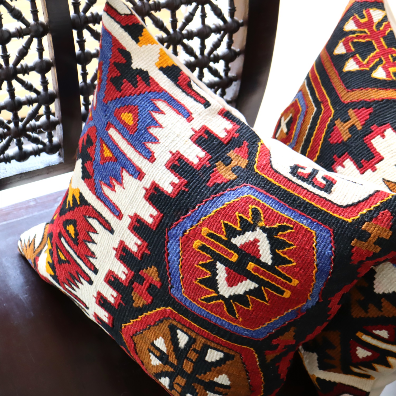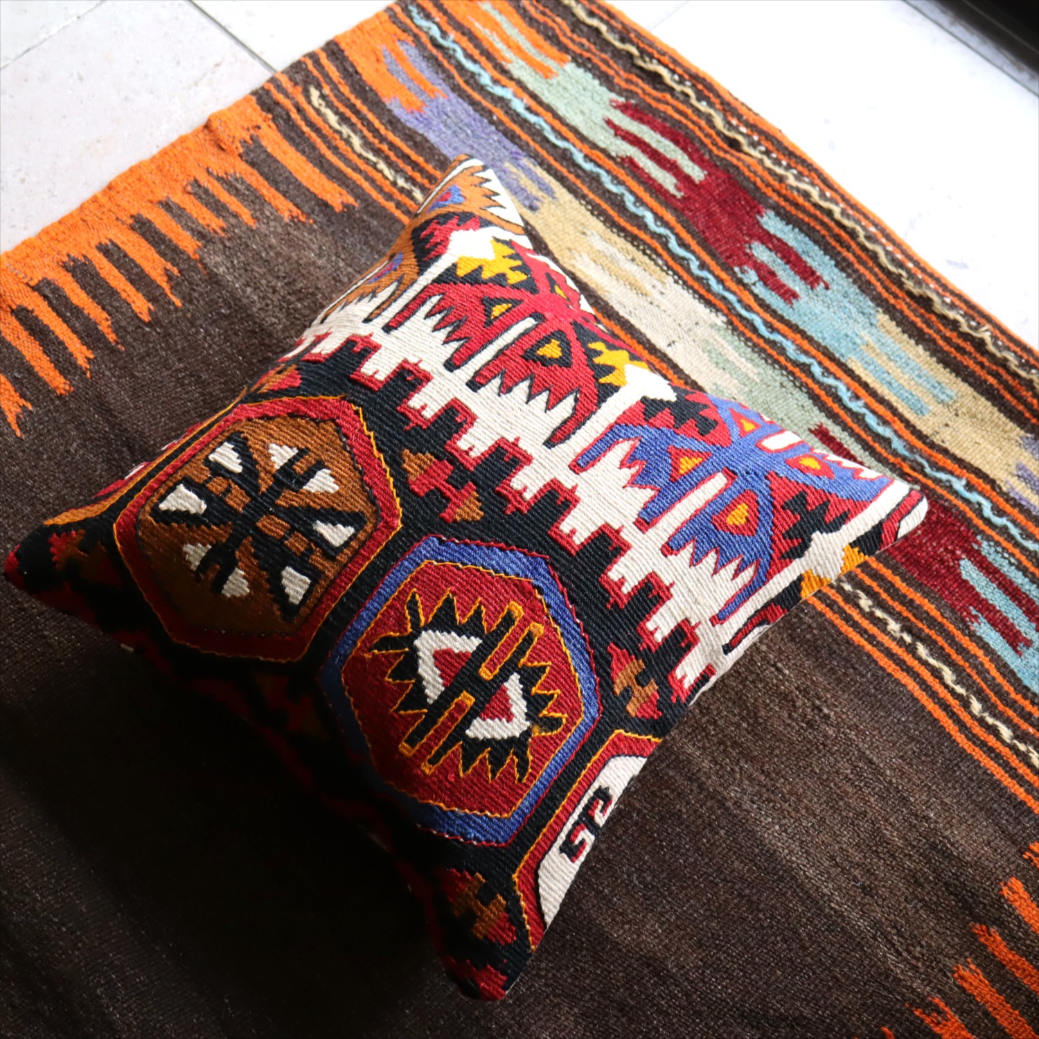 Key:Old Kilim, Kilim Cushion, Turkish Kilim, BOHO, Bohemian Decor, Vintage kilim, クッションカバー, オールドキリム, トルコ, ヴィンテージキリム, トライバルラグ, ピロー, ボヘミアンスタイル, BO-HO, ウール100%, 手織り, 一点もの, ガラタバザール