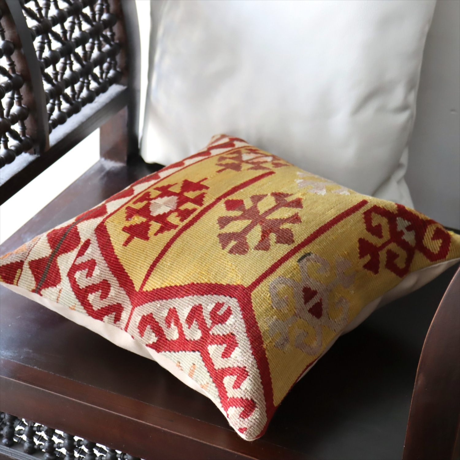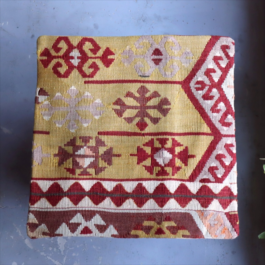 Key:Old Kilim, Kilim Cushion, Turkish Kilim, BOHO, Bohemian Decor, Vintage kilim, クッションカバー, オールドキリム, トルコ, ヴィンテージキリム, トライバルラグ, ピロー, ボヘミアンスタイル, BO-HO, ウール100%, 手織り, 一点もの, ガラタバザール