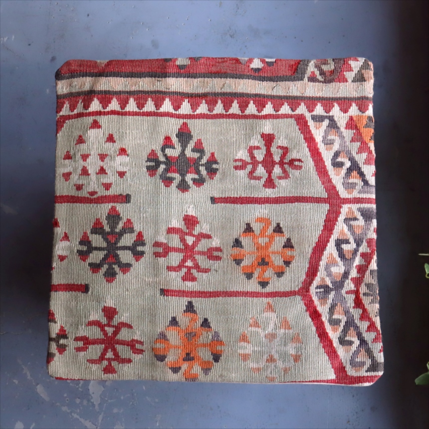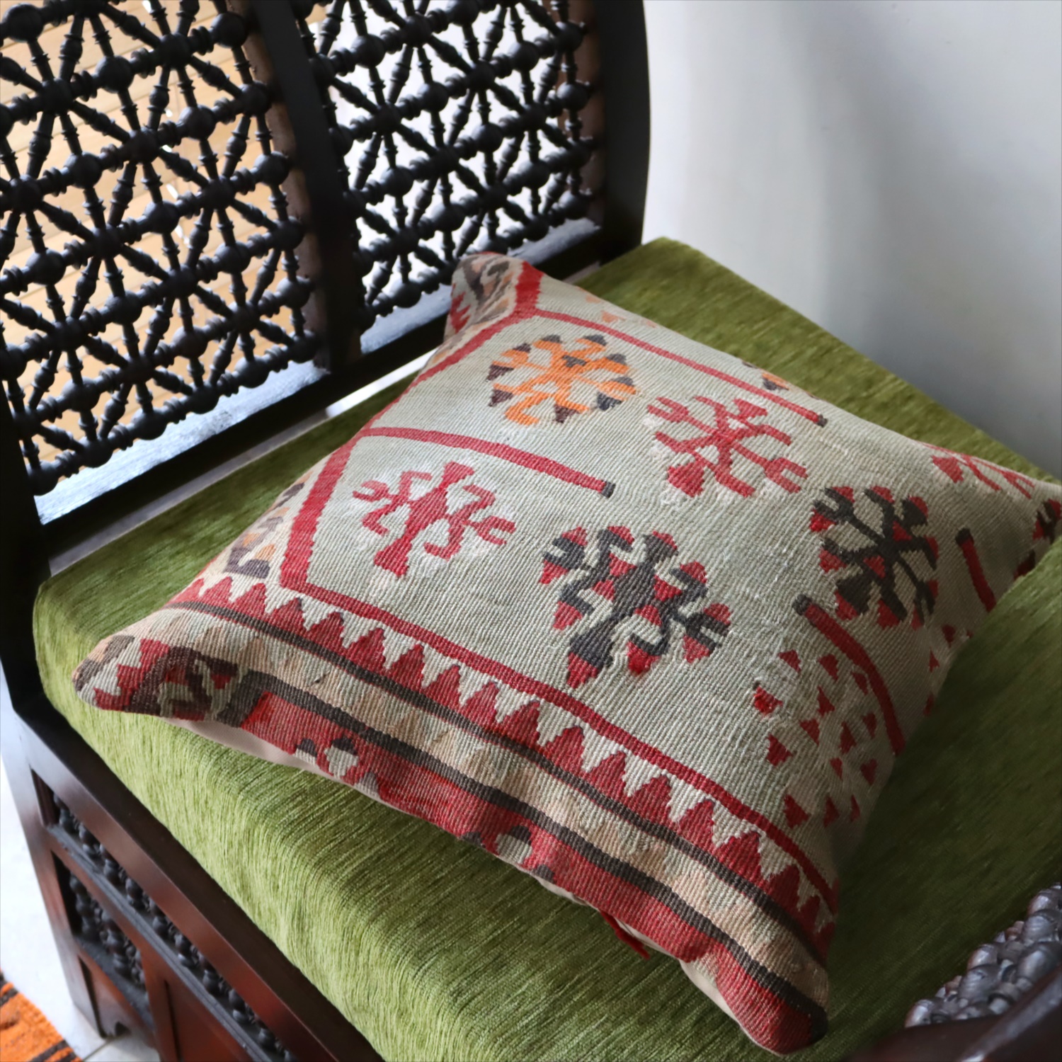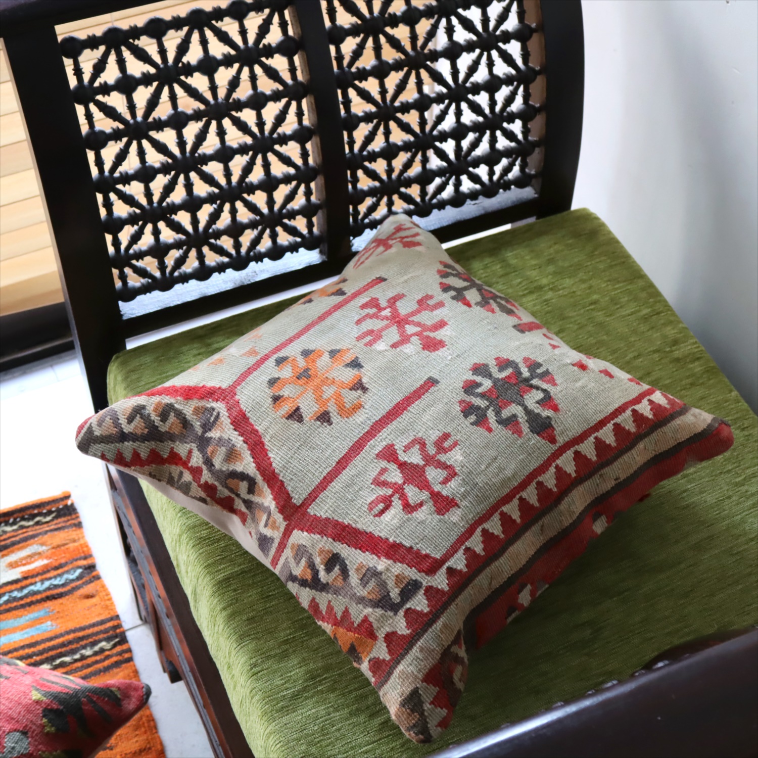 Key:Old Kilim, Kilim Cushion, Turkish Kilim, BOHO, Bohemian Decor, Vintage kilim, クッションカバー, オールドキリム, トルコ, ヴィンテージキリム, トライバルラグ, ピロー, ボヘミアンスタイル, BO-HO, ウール100%, 手織り, 一点もの, ガラタバザール