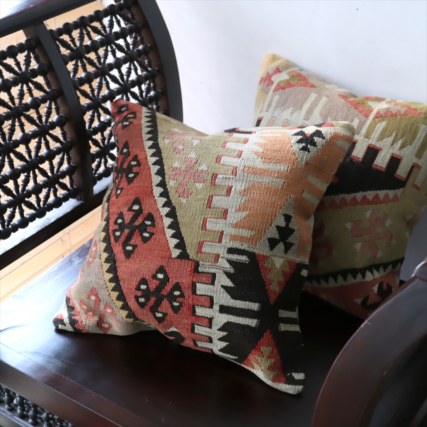 オールドキリム クッションカバー40×40cm カイセリ地方 チフカナットキリム