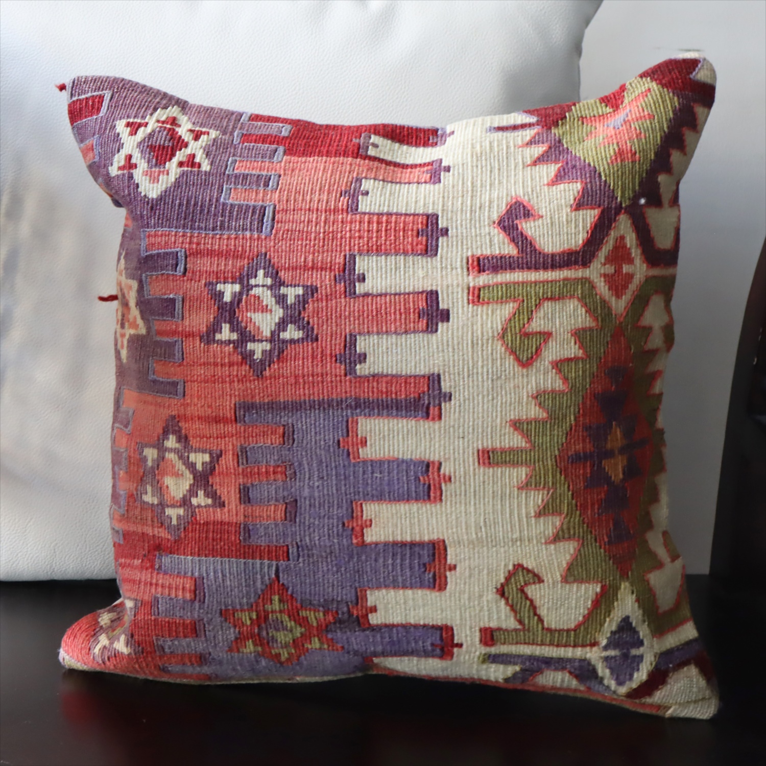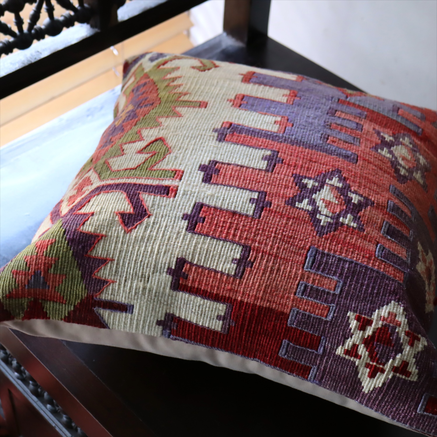 Key:Old Kilim, Kilim Cushion, Turkish Kilim, BOHO, Bohemian Decor, Vintage kilim, クッションカバー, オールドキリム, トルコ, ヴィンテージキリム, トライバルラグ, ピロー, ボヘミアンスタイル, BO-HO, ウール100%, 手織り, 一点もの, ガラタバザール