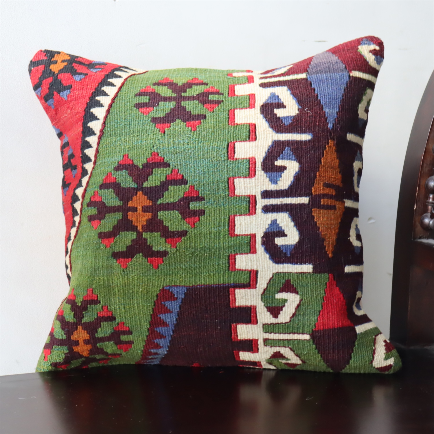 Key:Old Kilim, Kilim Cushion, Turkish Kilim, BOHO, Bohemian Decor, Vintage kilim, クッションカバー, オールドキリム, トルコ, ヴィンテージキリム, トライバルラグ, ピロー, ボヘミアンスタイル, BO-HO, ウール100%, 手織り, 一点もの, ガラタバザール