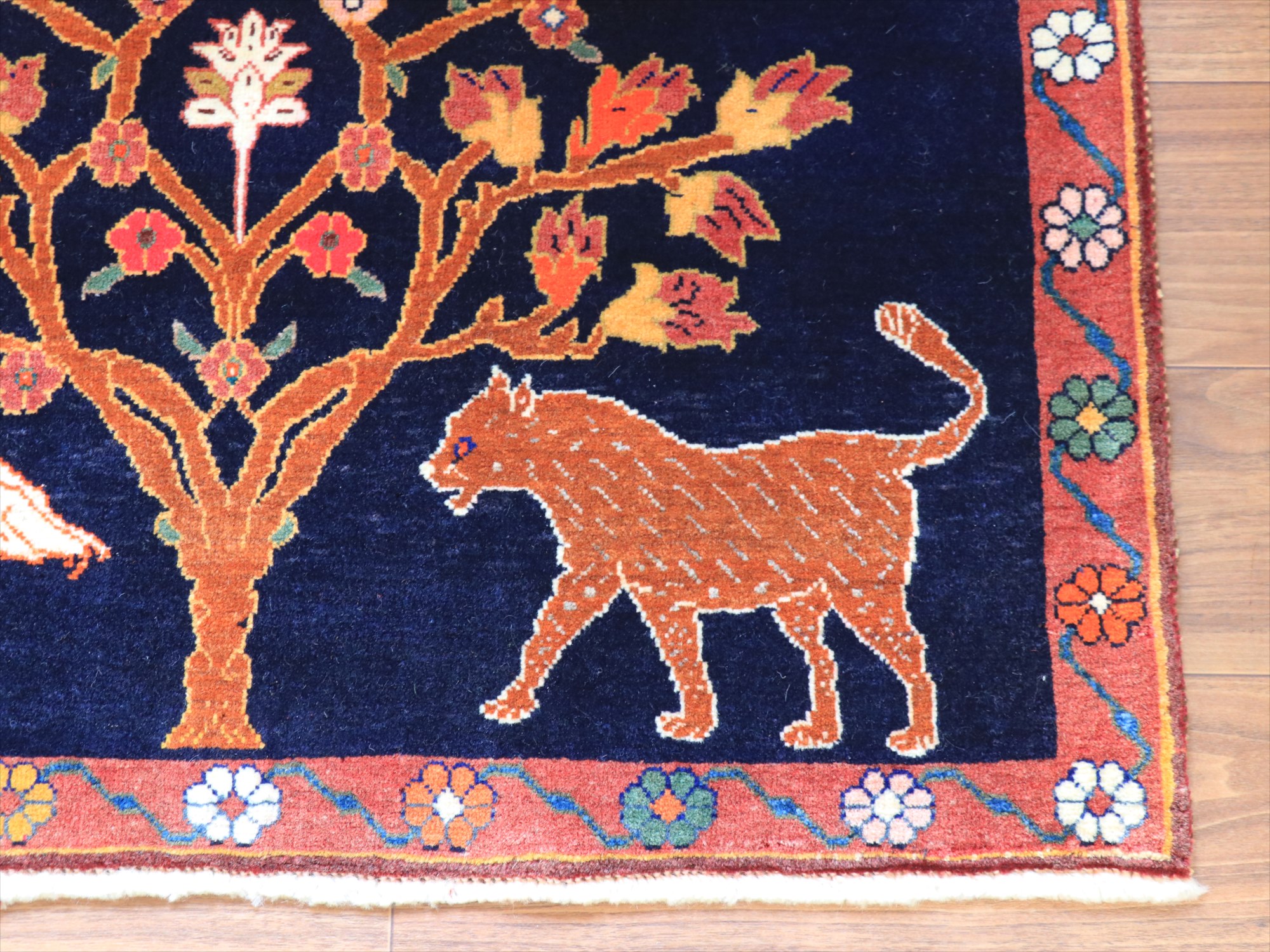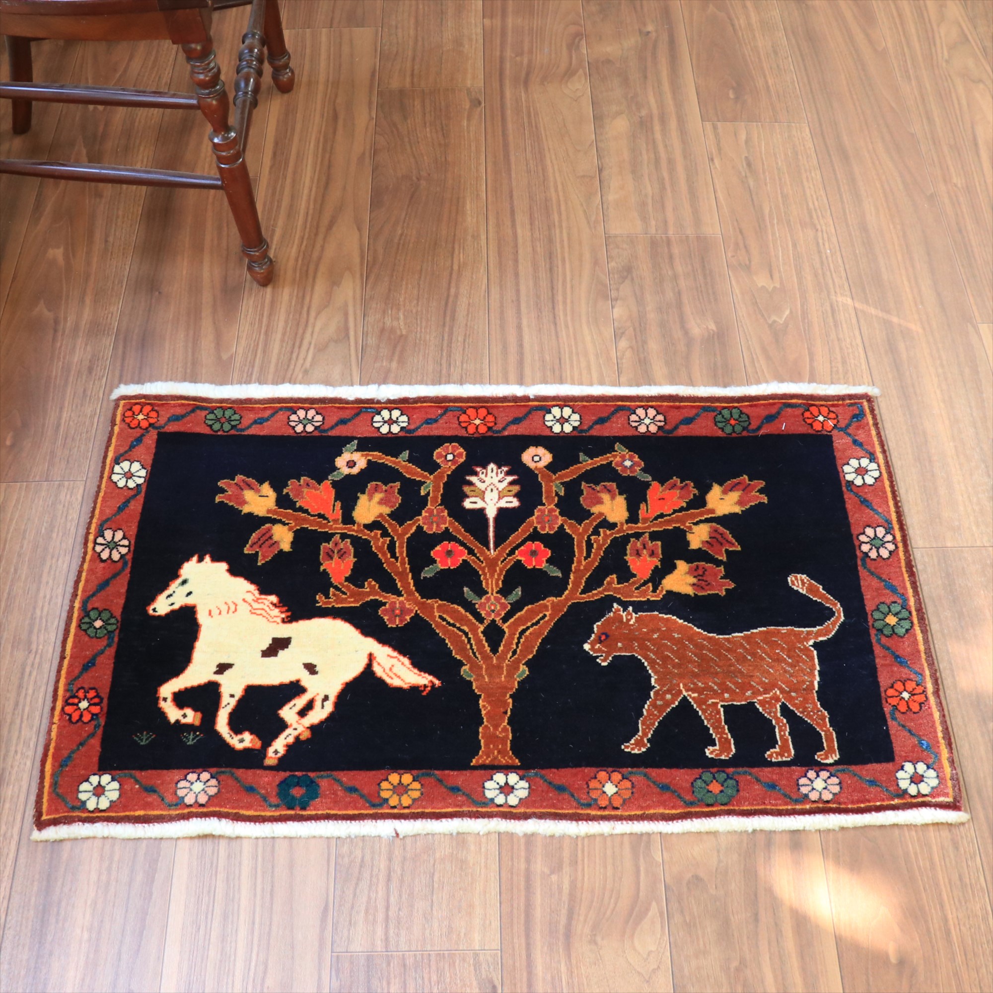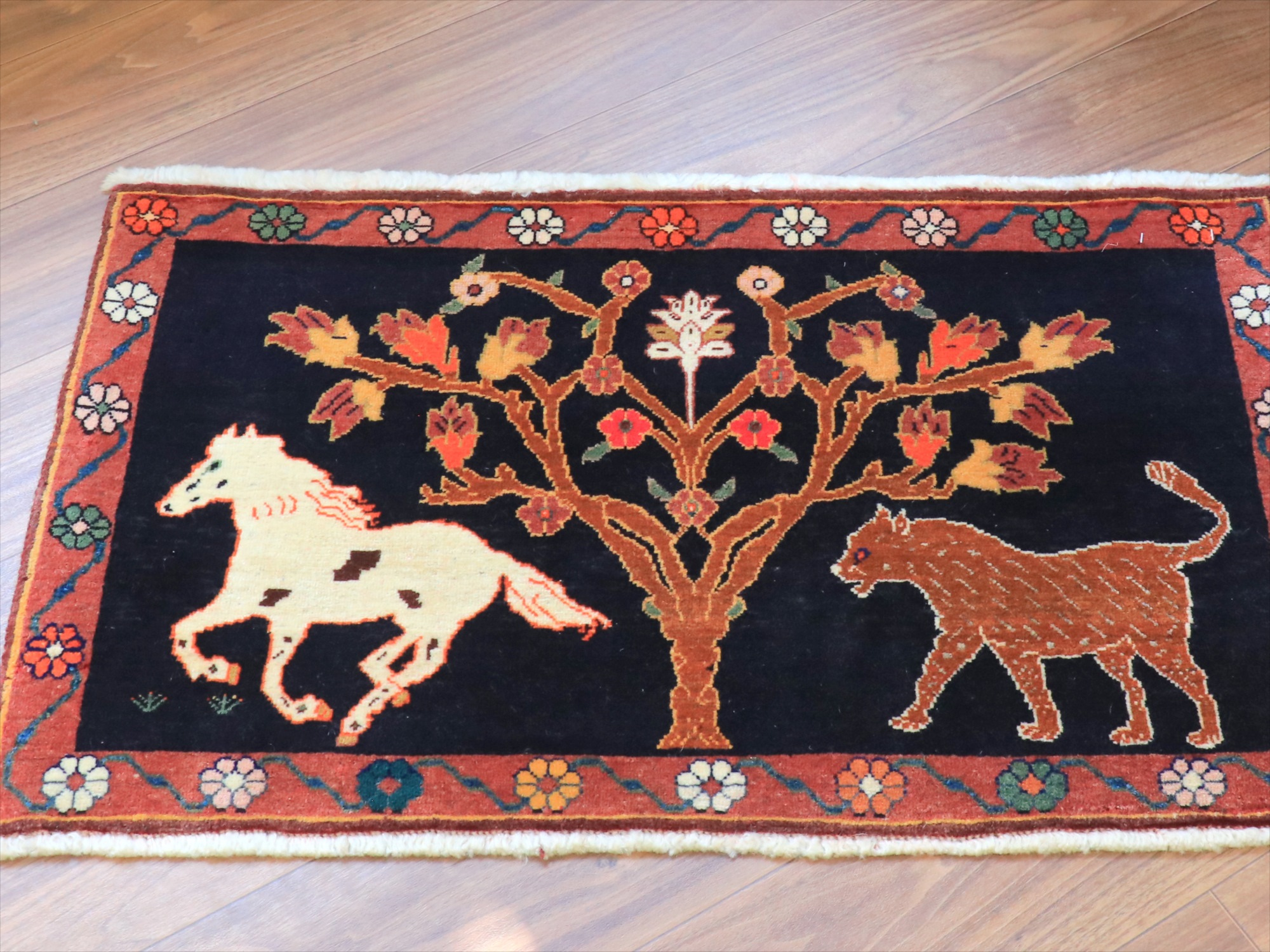 - オールドギャッベ カシュカイ族の手織りラグ 89x53cm 生命の木 馬とライオン