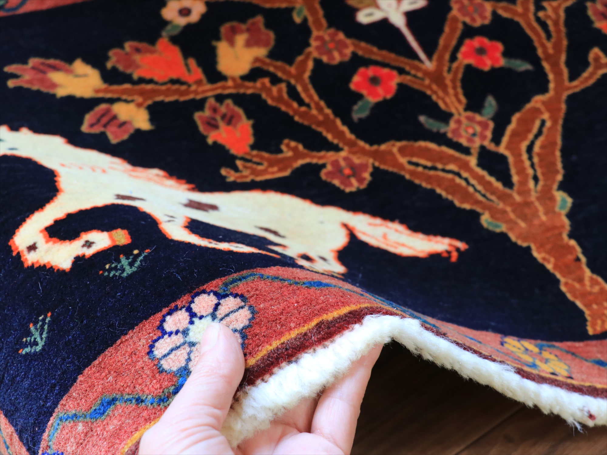 オールドギャッベ カシュカイ族の手織りラグ 89x53cm 生命の木 馬とライオン