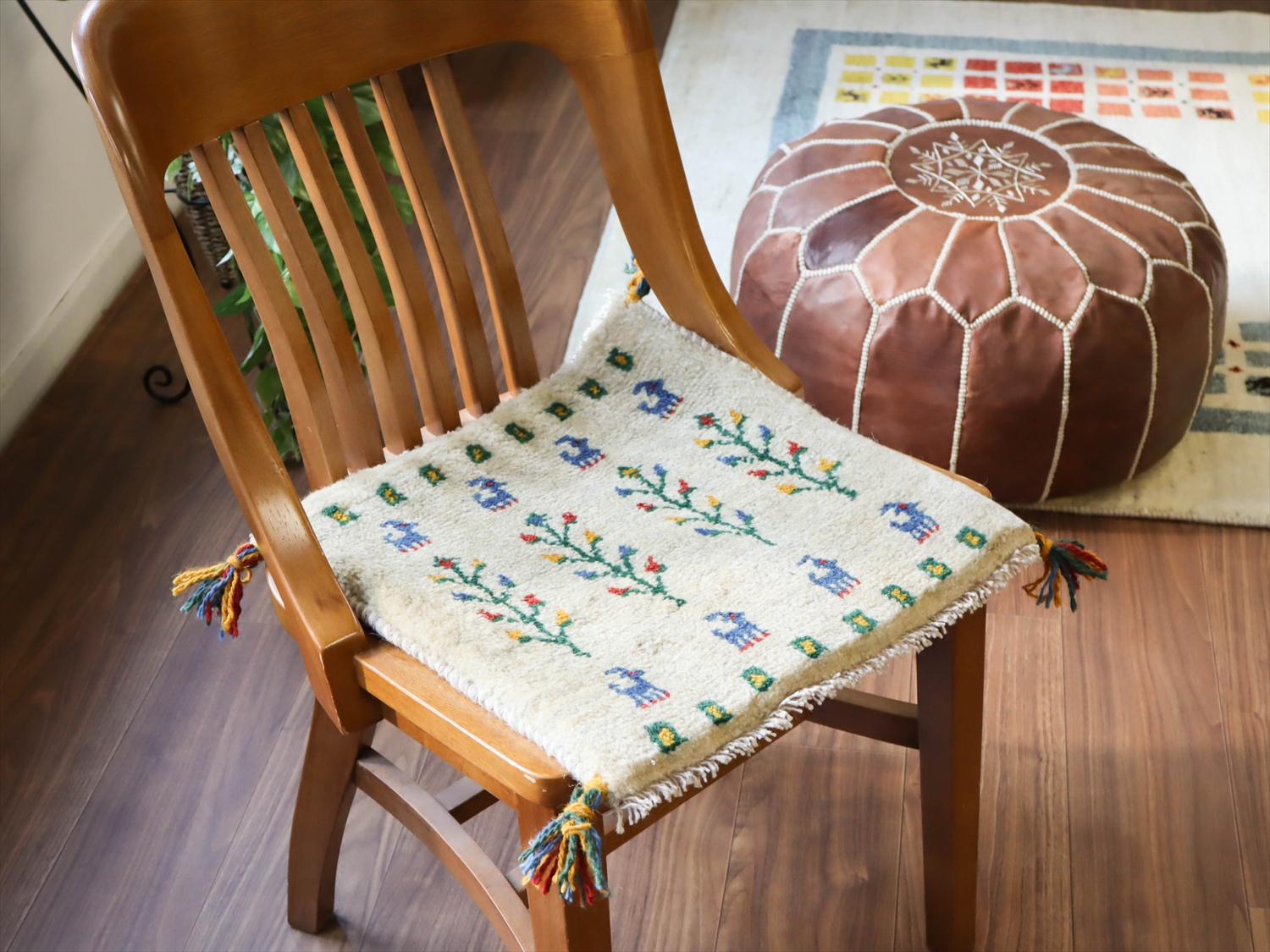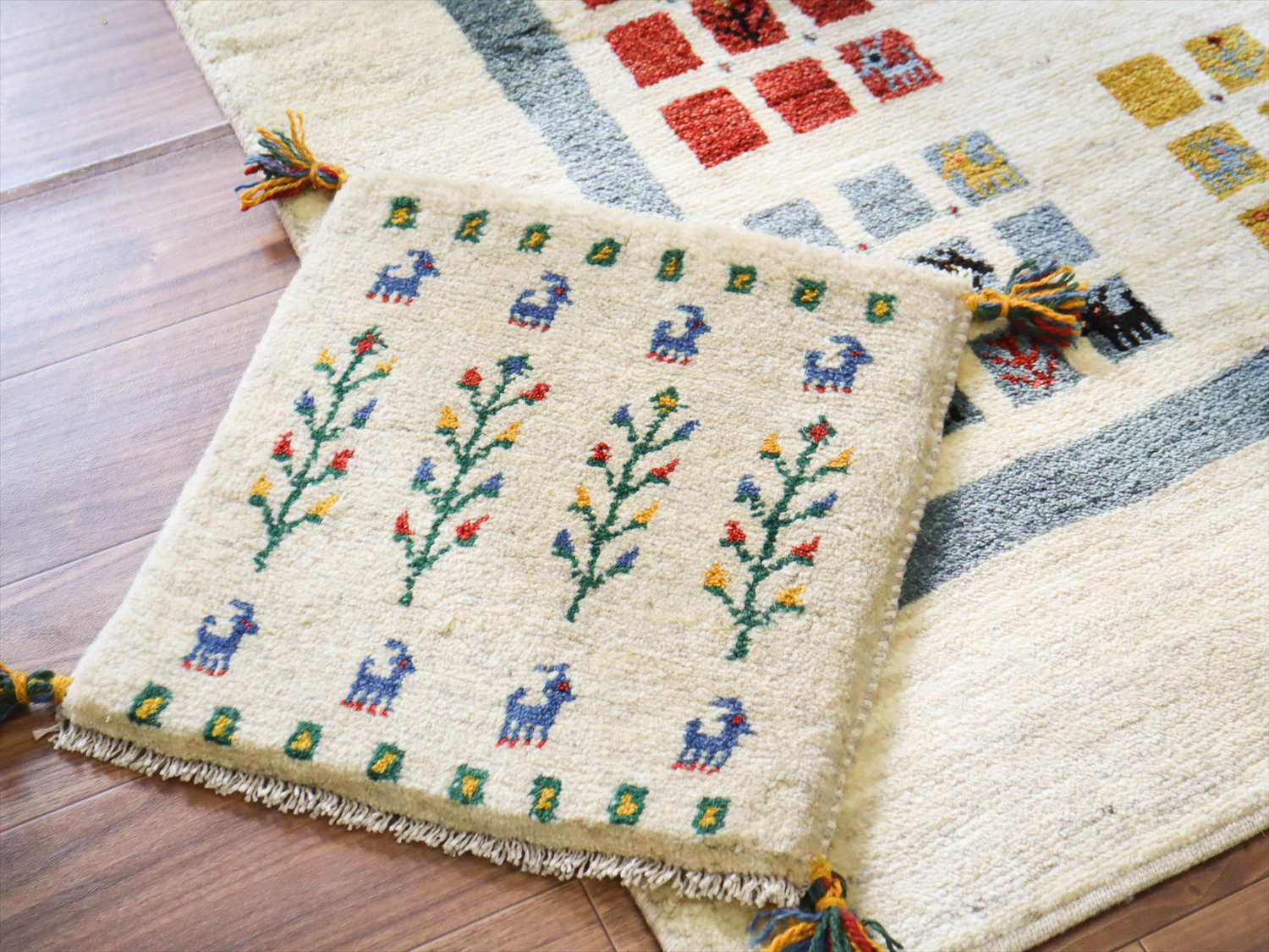 ギャッベ イラン産手織り 座布団サイズ 42x41cm ナチュラルアイボリー