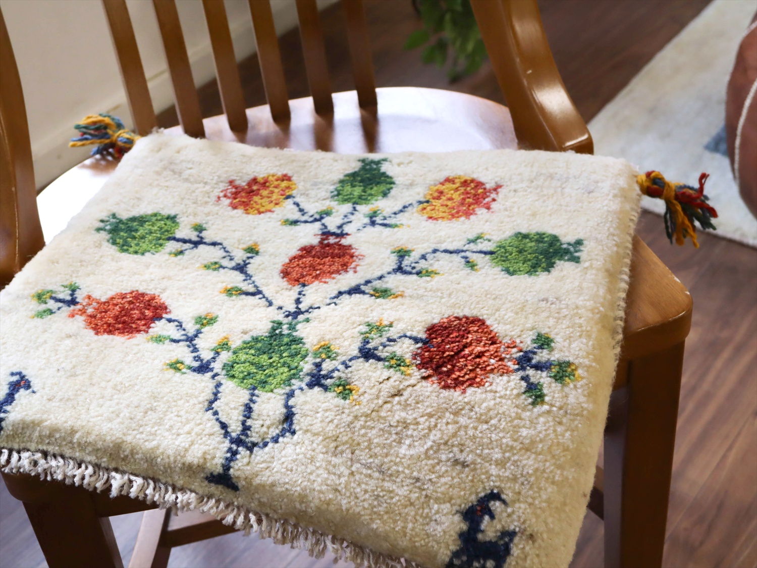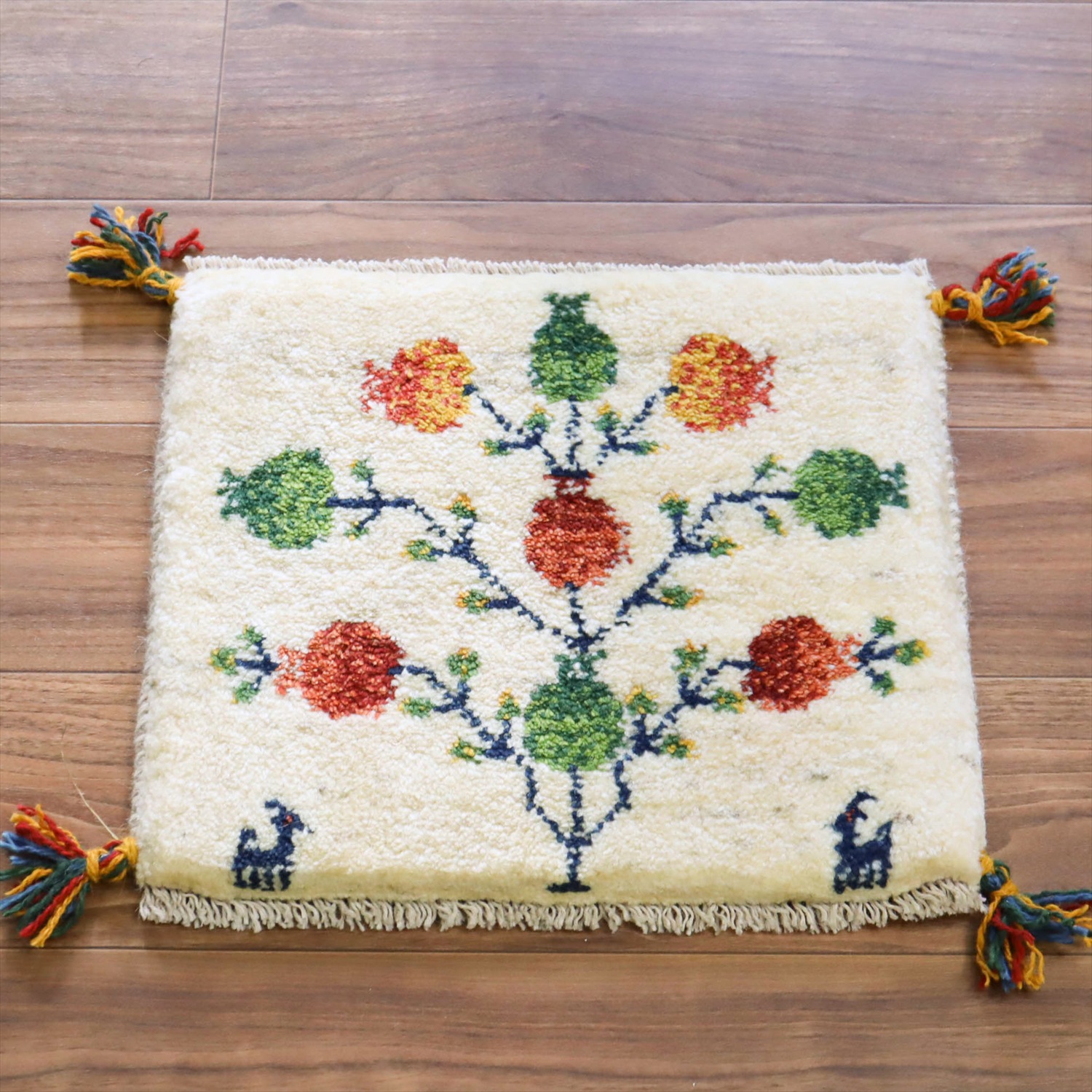 ギャッベ イラン産手織り 座布団サイズ 37x43cm ナチュラルアイボリー ザクロの実