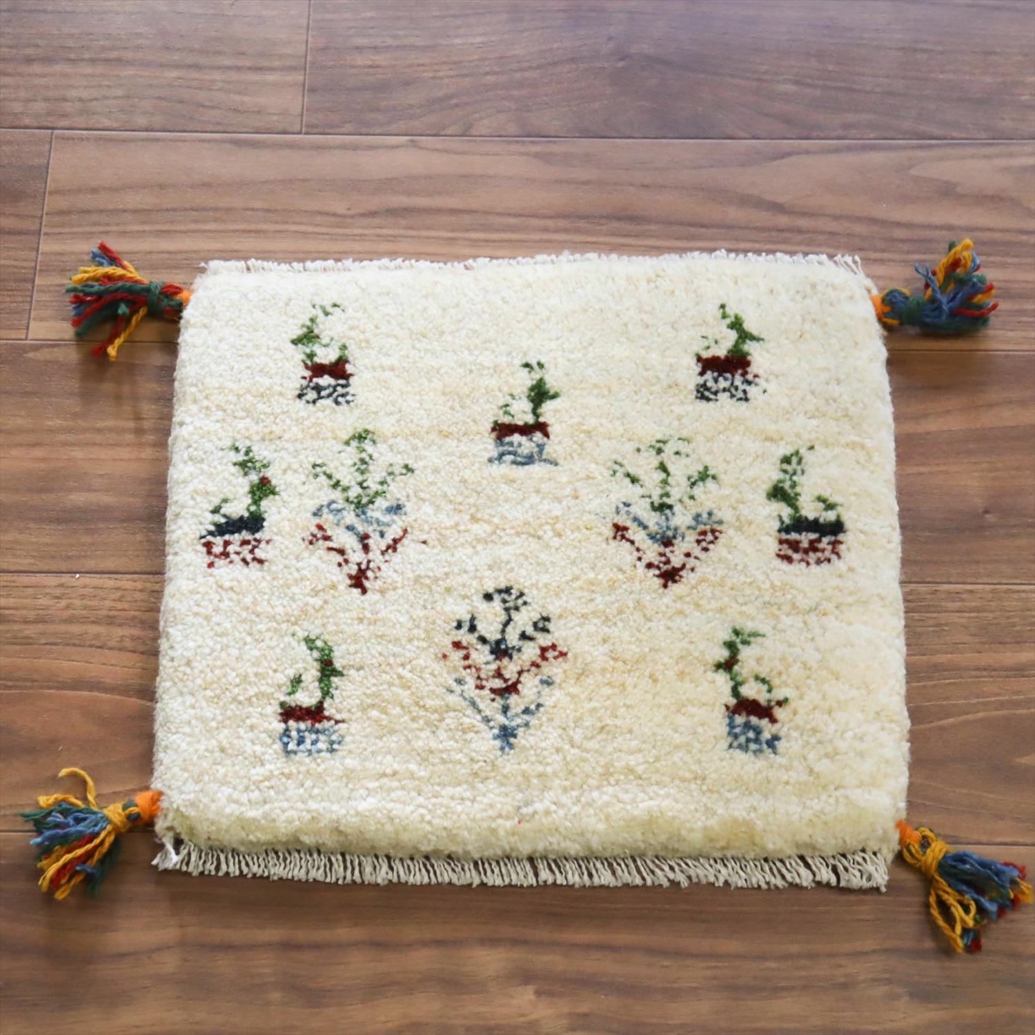 ギャッベ イラン産手織り 座布団サイズ 37x40cm ナチュラルアイボリー