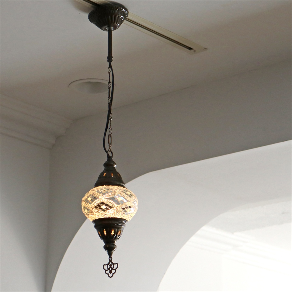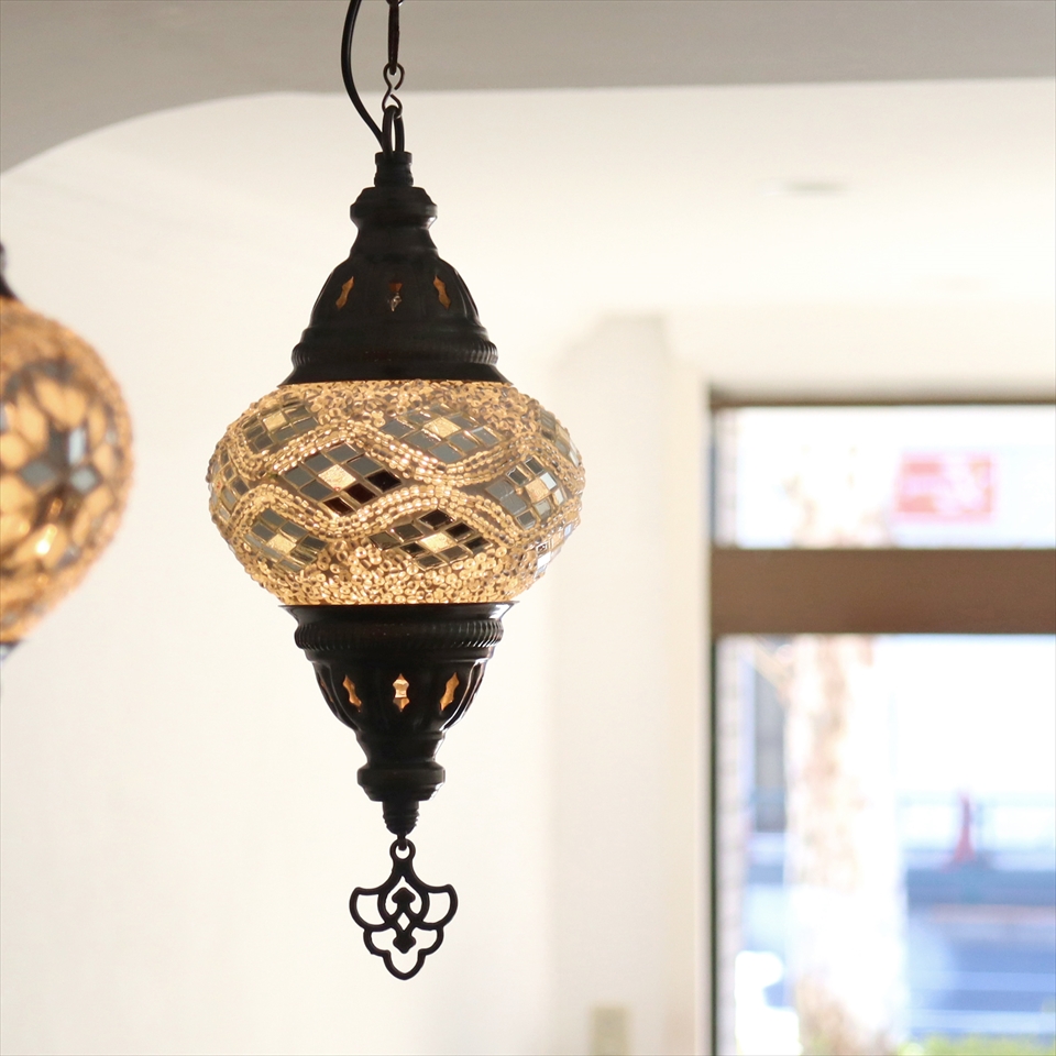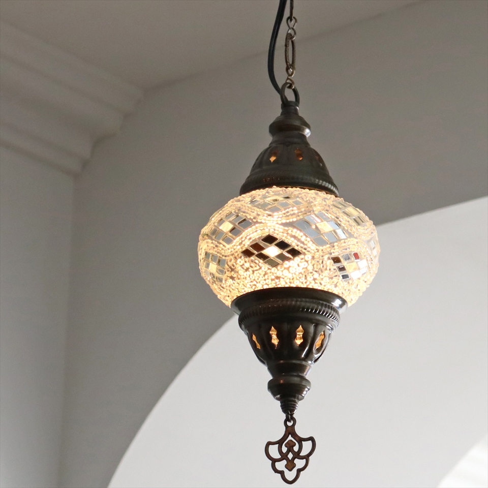 - トルコランプ モザイクランプ 直径13cm 全高67cm ホワイト/アーガイル ペンダントライト