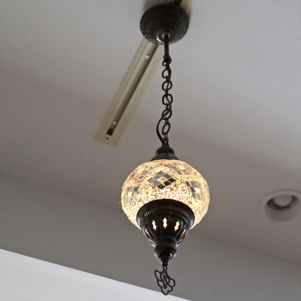 トルコランプ モザイクランプ 直径13cm 全高67cm ホワイト/アーガイル ペンダントライト