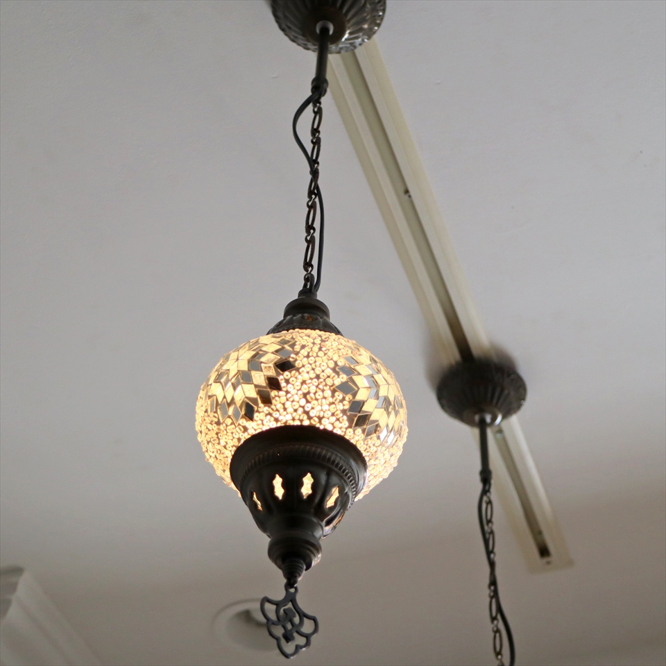 - トルコランプ モザイクランプ 直径13cm 全高67cm ホワイト ペンダントライト