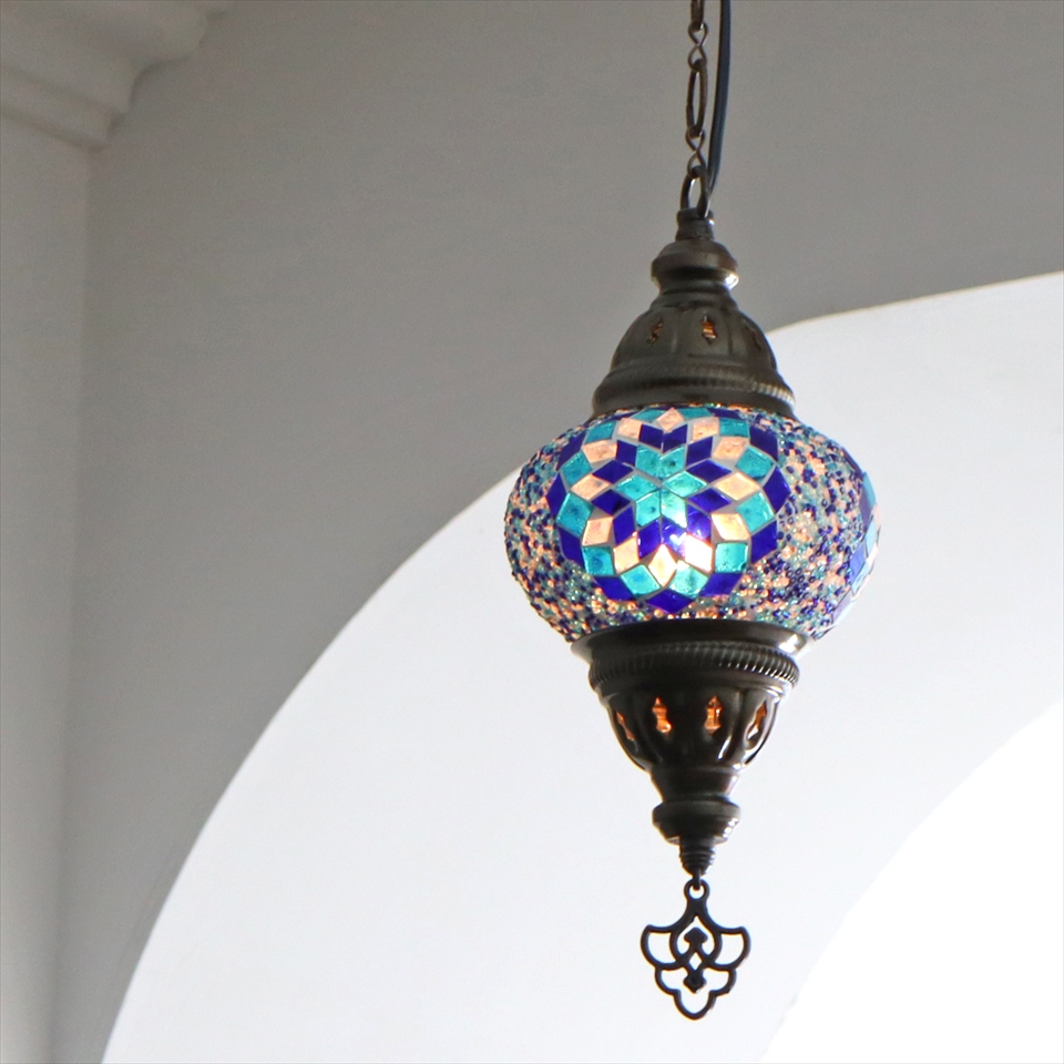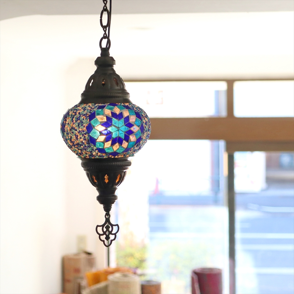 - トルコランプ モザイクランプ 直径13cm 全高67cm ブルー ペンダントライト