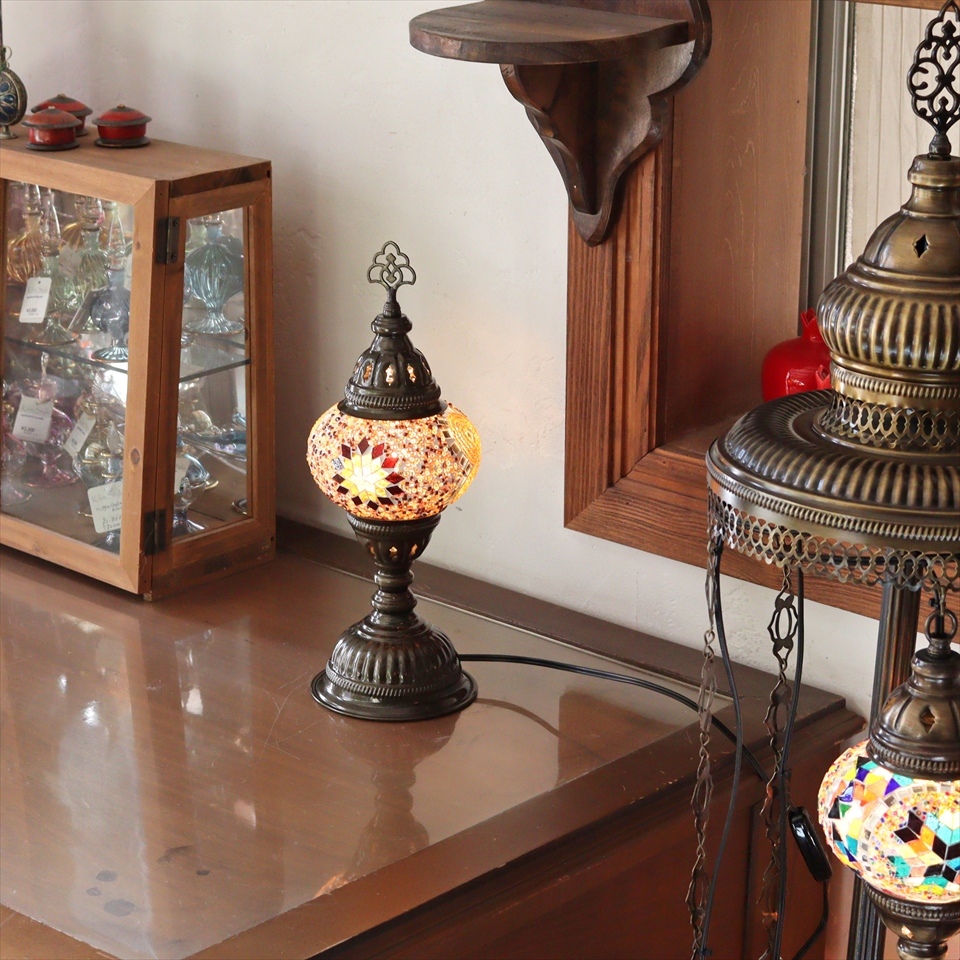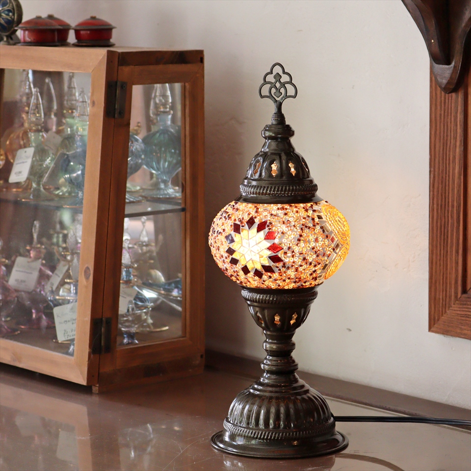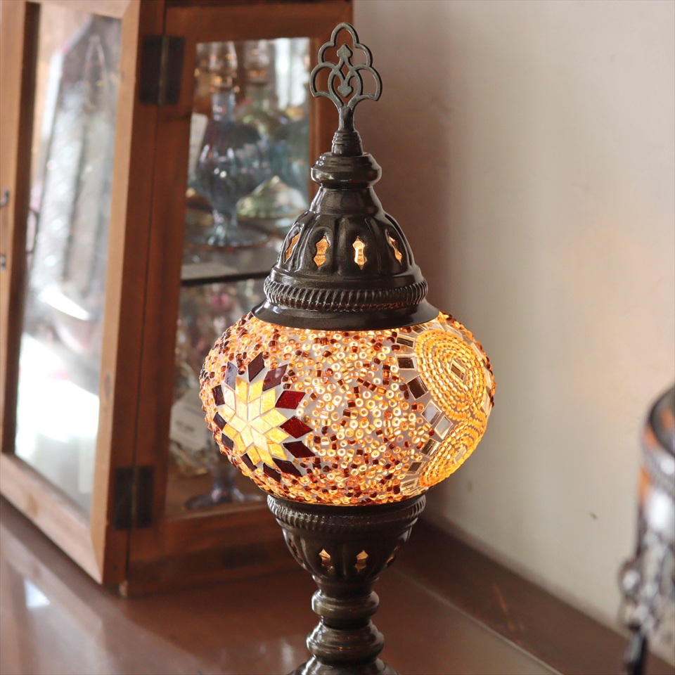 - トルコランプ モザイクテーブルランプ 直径13cm 全高36cm アンバー