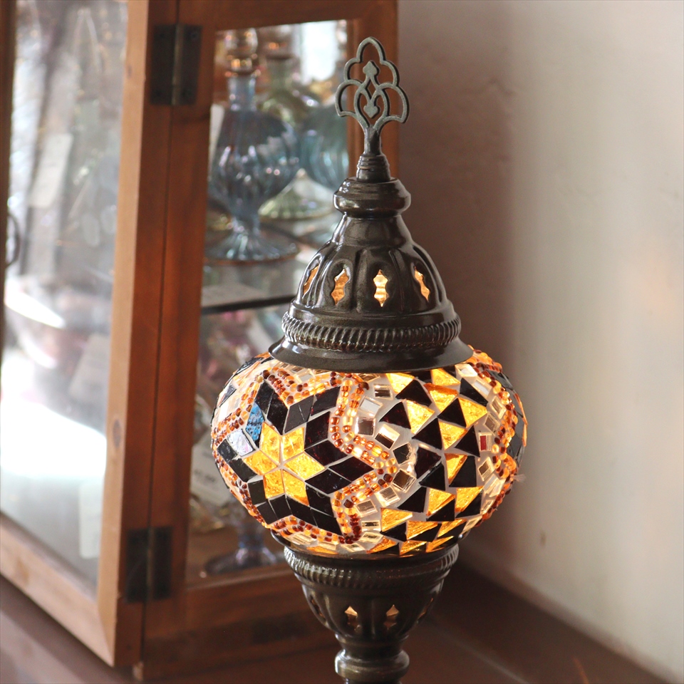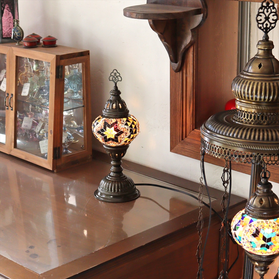 - トルコランプ モザイクテーブルランプ 直径13cm 全高36cm アンバー