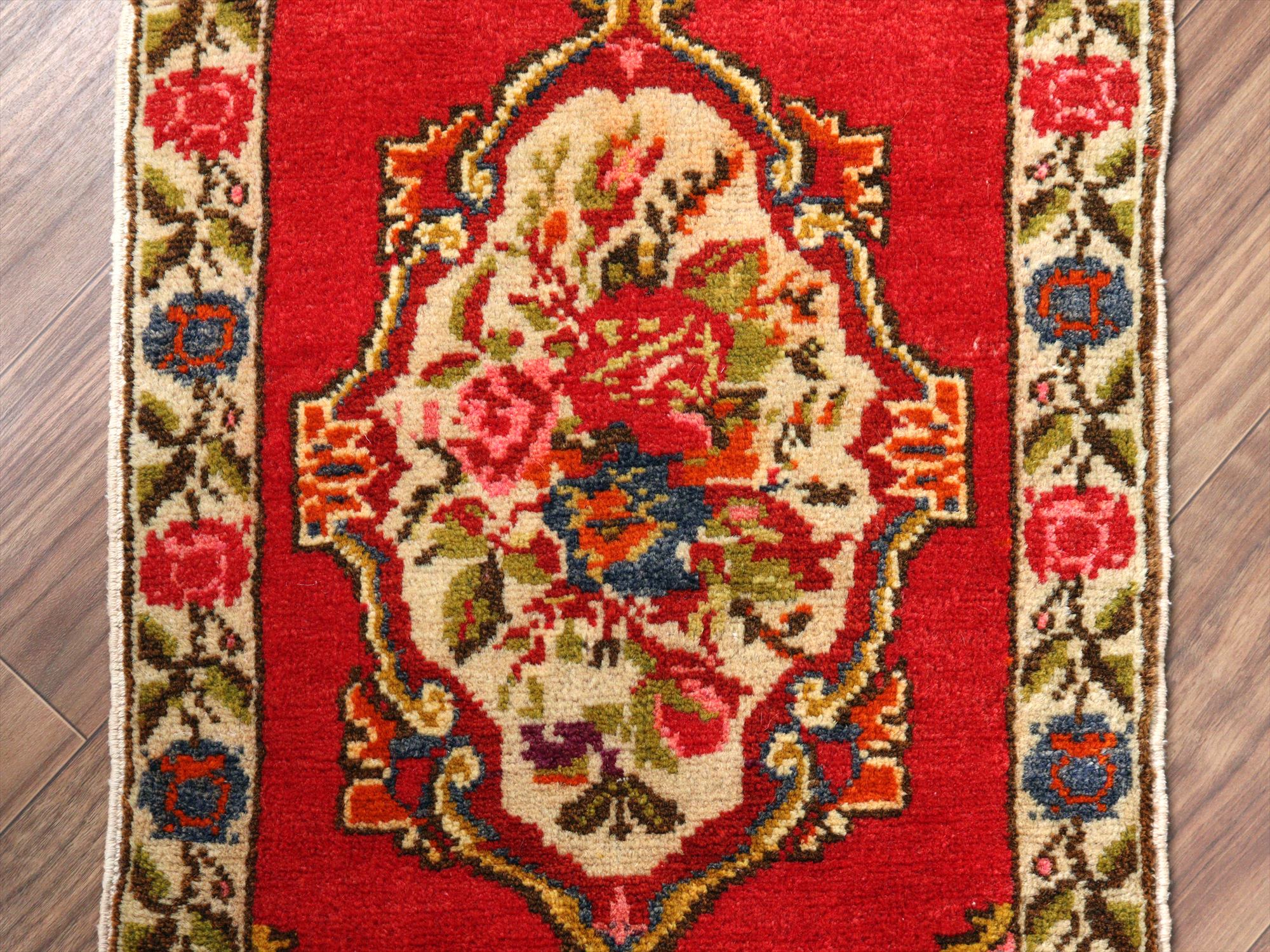 - トルコ絨毯 ヤストゥク105×49cm カッパドキア バラの花束