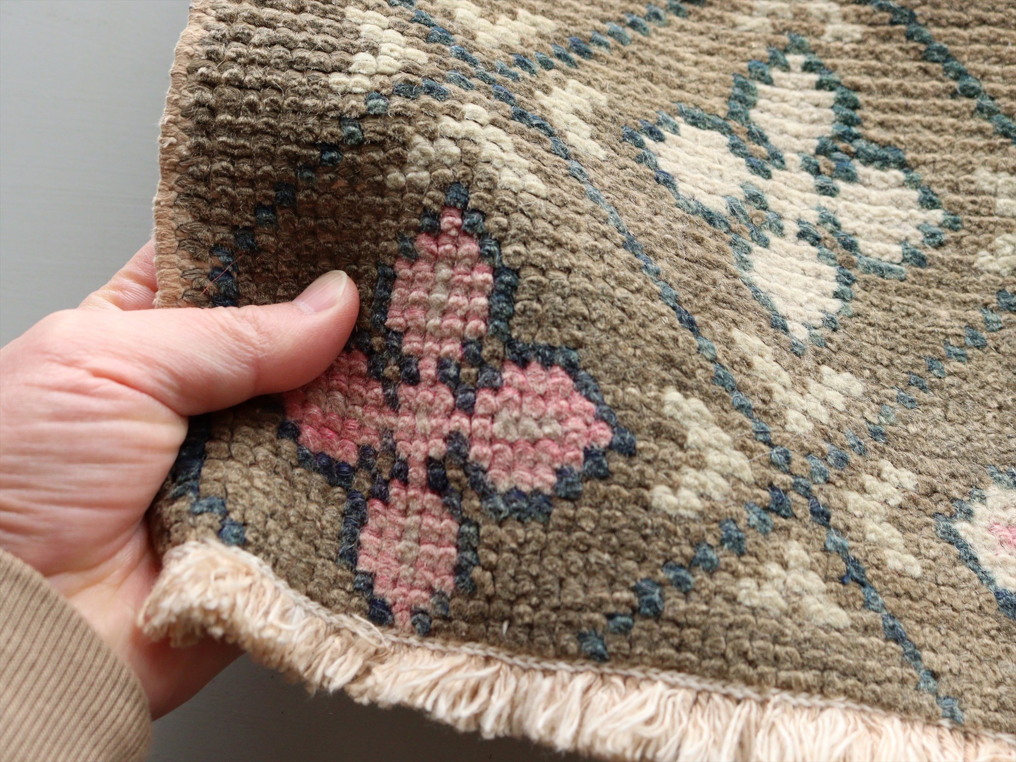 手織り絨毯 小さなサイズ55×44cm マニサ 連続する幾何学模様