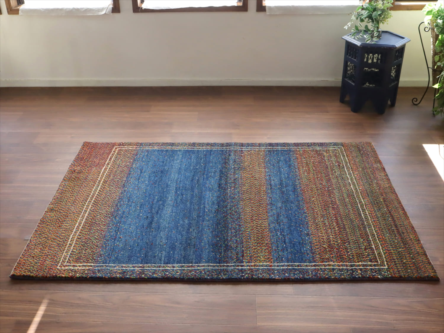 - ギャッベ ノマド 177x115cm ブルー & ドットミックス イラン産手織り Gabbeh Nomad