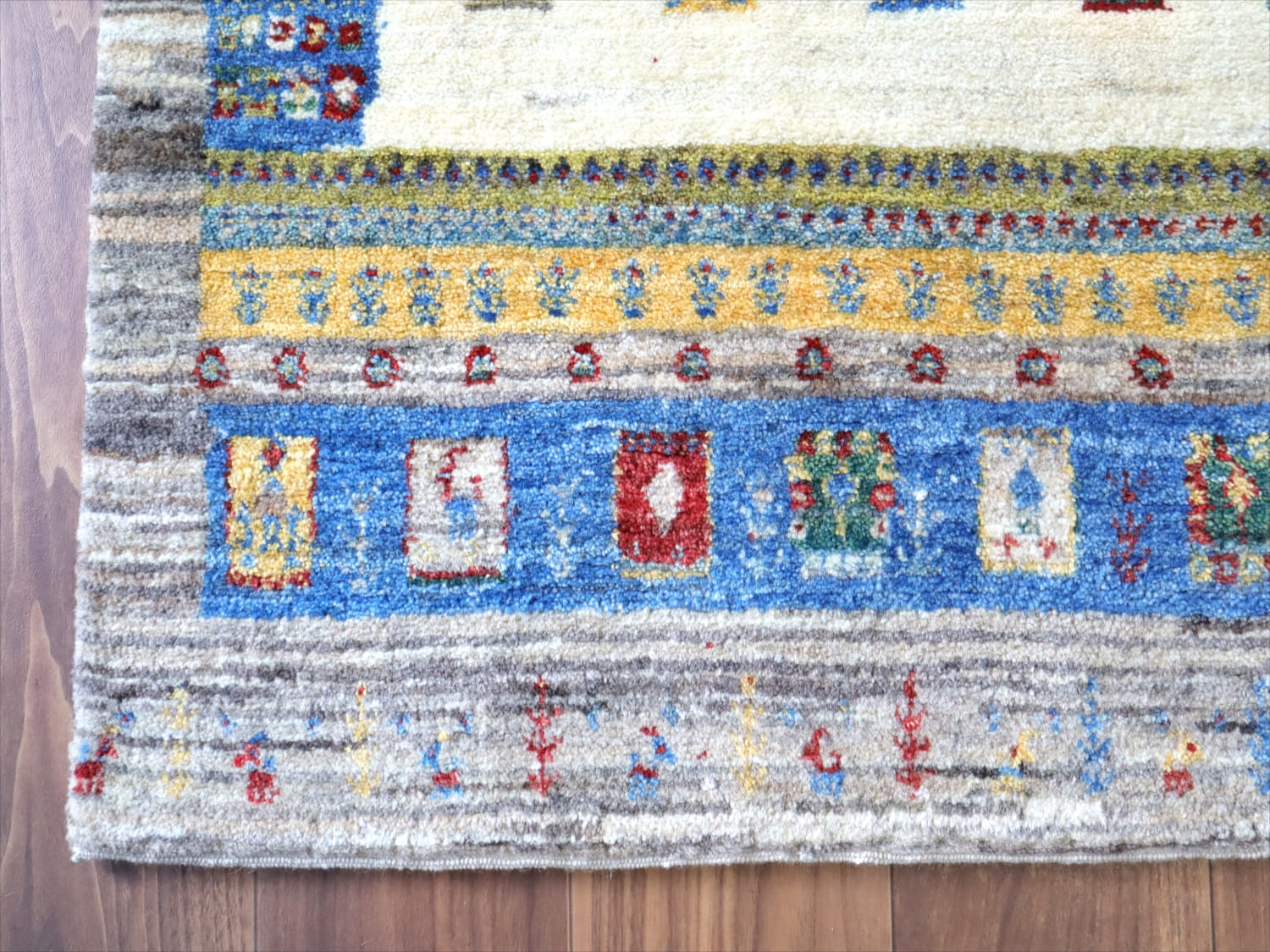- ギャッベ バナフシェ 149x98cm ナチュラル&グレー イラン産手織り Gabbeh Banafsheh