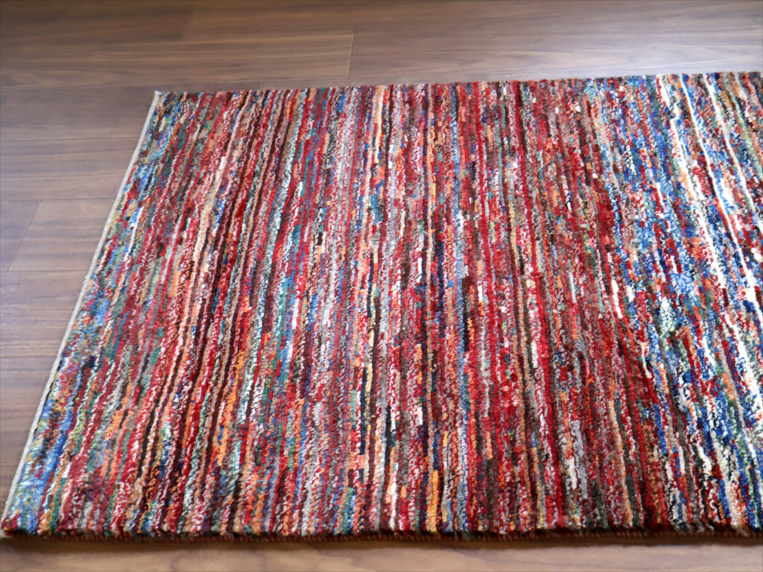 パイル(毛足)はすっきり刈り込んであり、ギャベ全体の厚みは1.3-1.4cm程度。