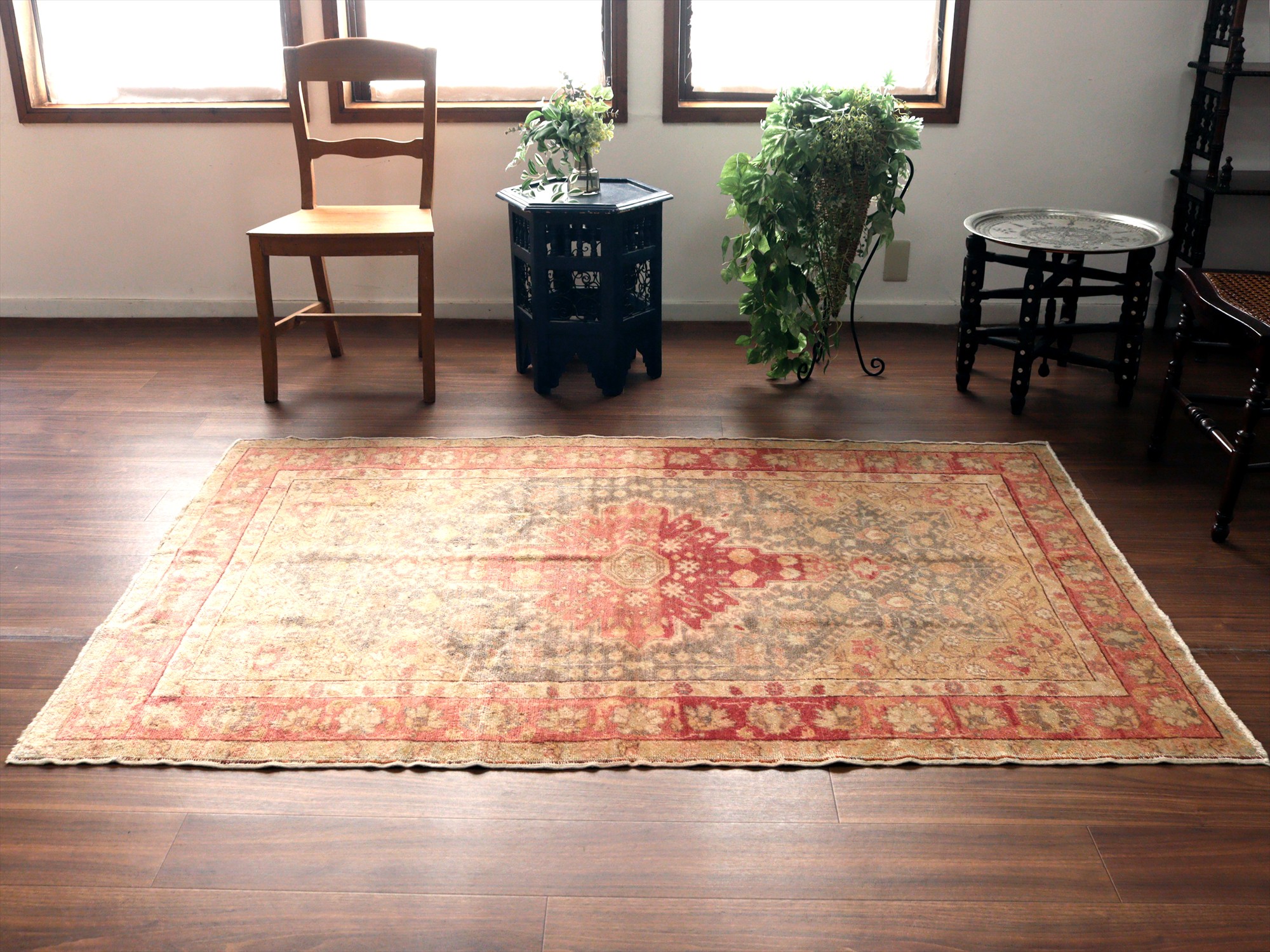 - オールドラグ 赤いメダリオン185×126cm トルコ絨毯 レッド&ネイビー