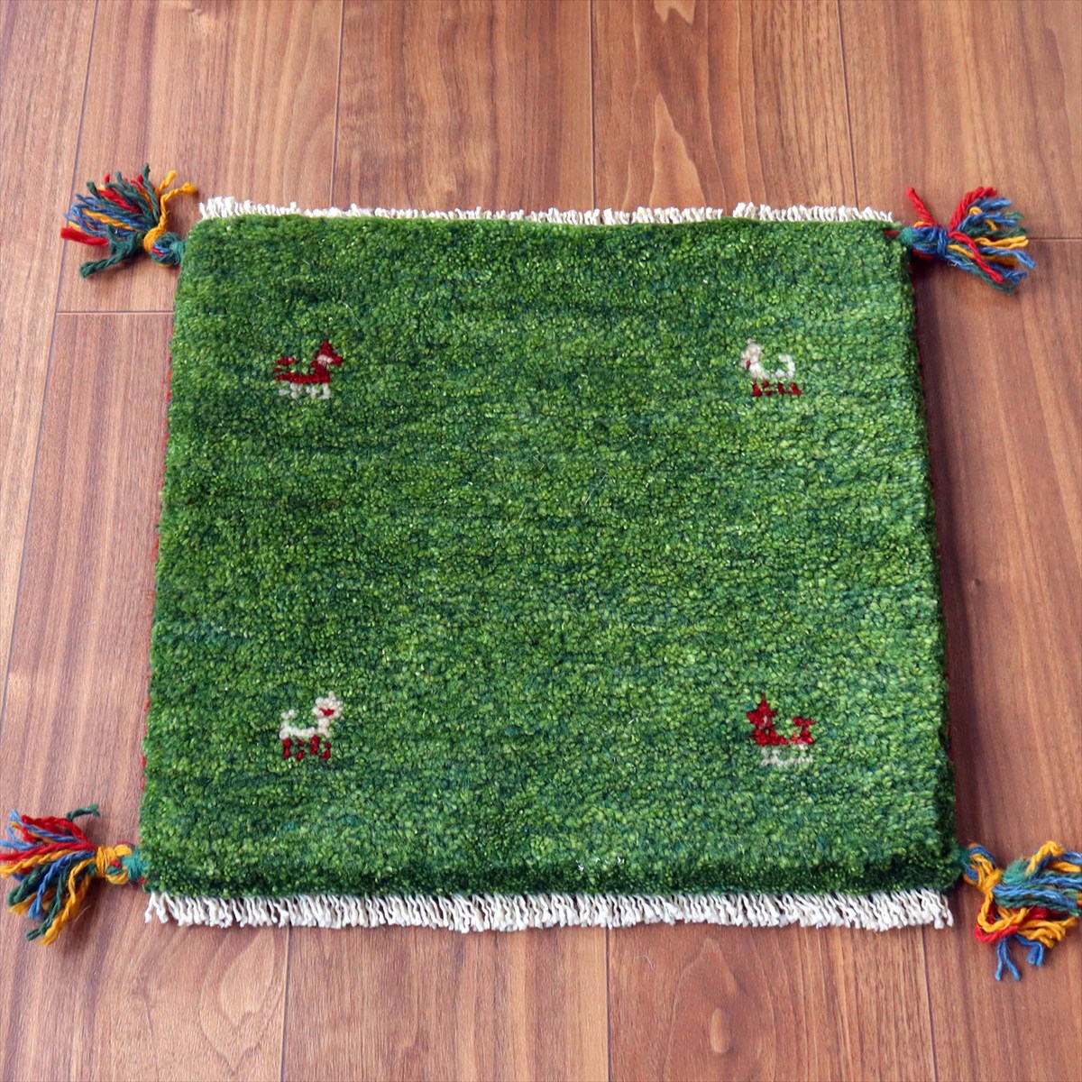 - ギャッベ イラン産手織り 座布団サイズ 39×41cm グリーン 動物モチーフ