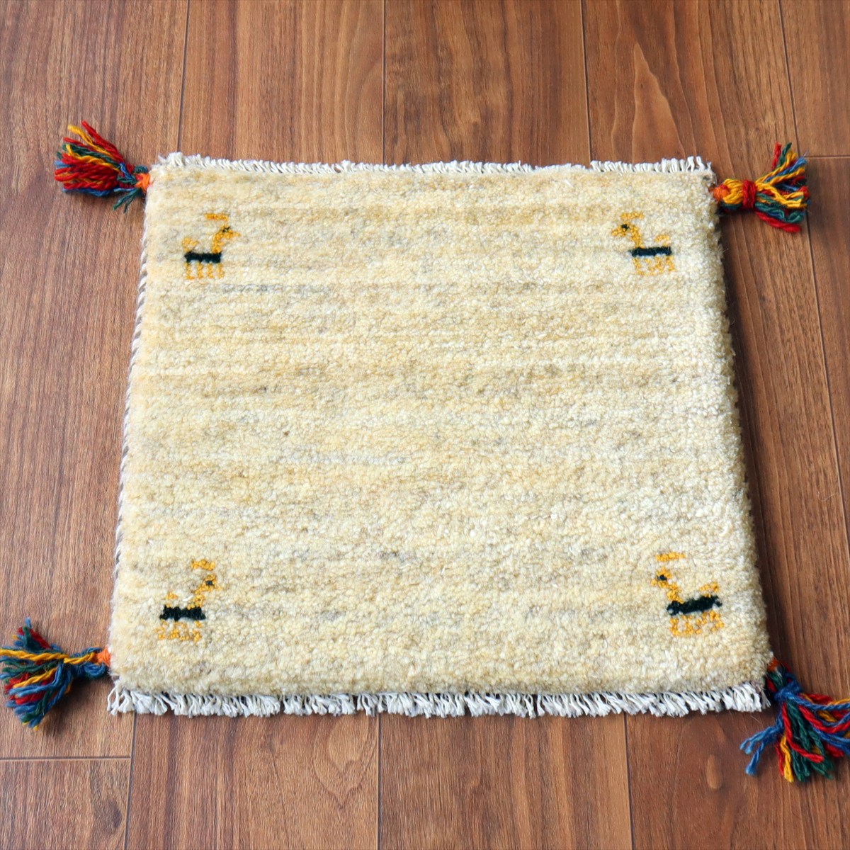 ギャッベ イラン産手織り 座布団サイズ 38×41cm ナチュラルアイボリー 動物モチーフ