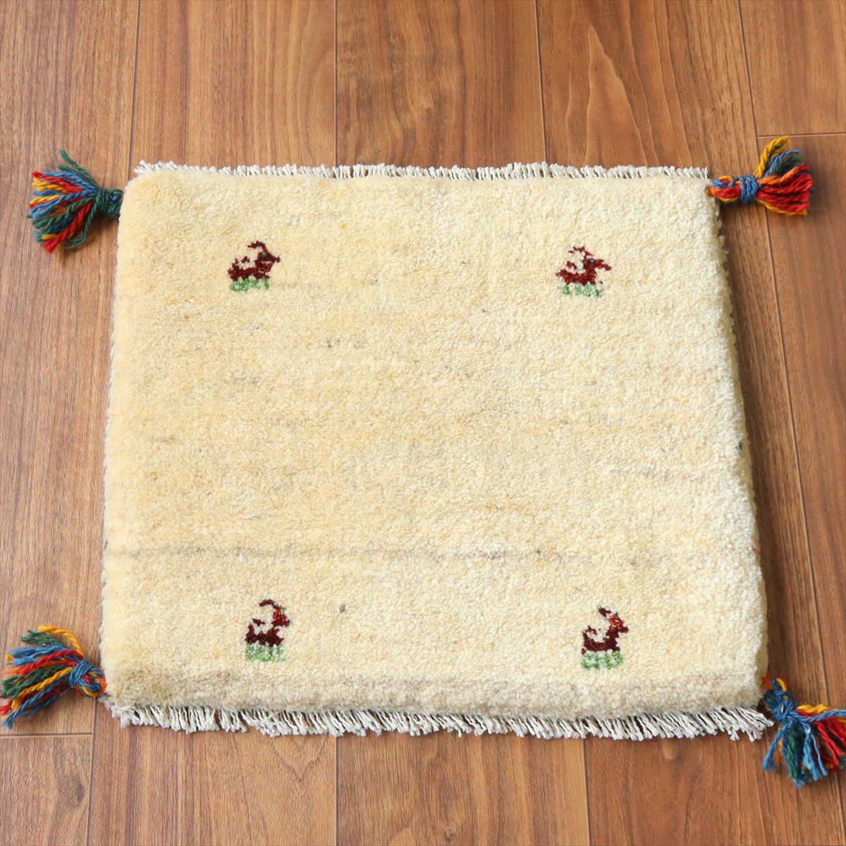 ギャッベ イラン産手織り 座布団サイズ 39×42cm ナチュラルアイボリー 動物モチーフ