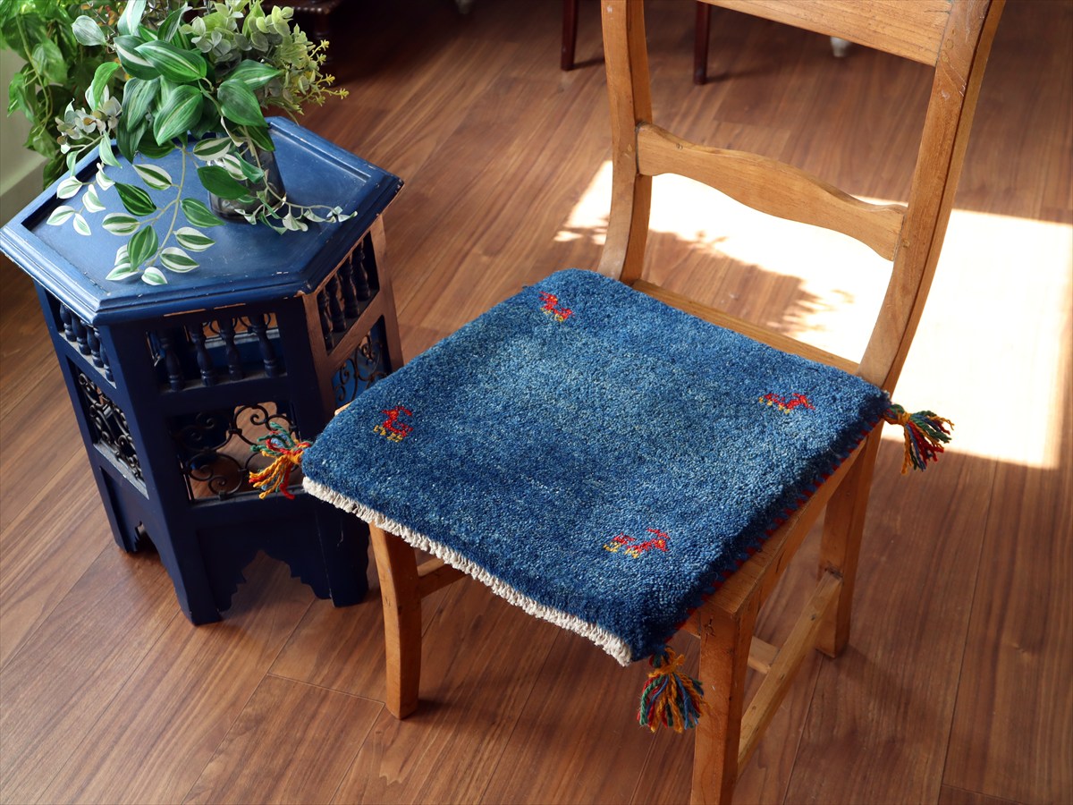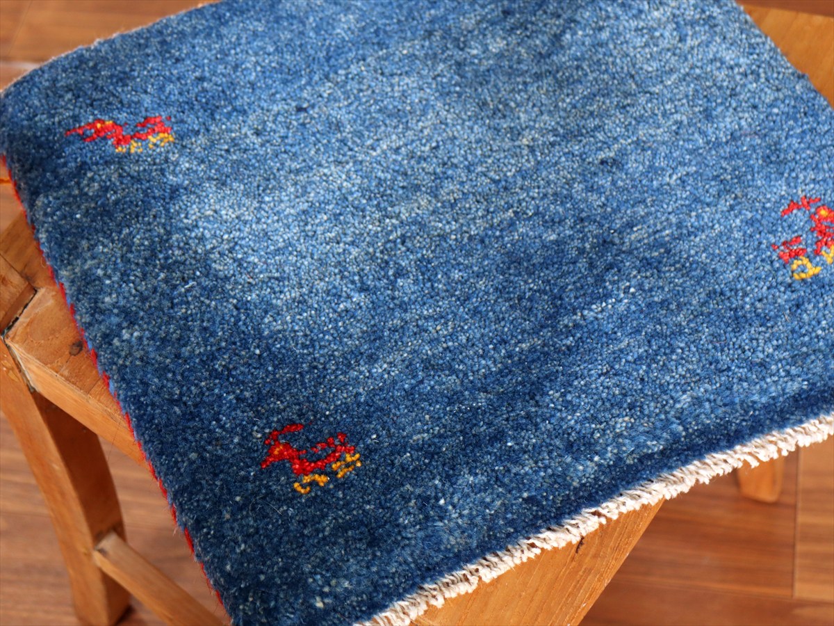 ギャッベ イラン産手織り 座布団サイズ 40×40cm ブルー 動物モチーフ