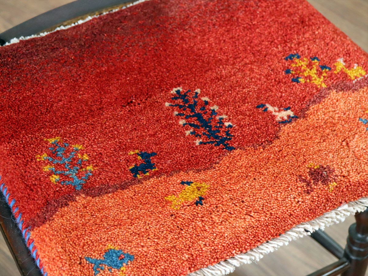 - ギャッベ イラン産手織り 座布団サイズ 38×45cm レッド 生命の樹と動物 風景画