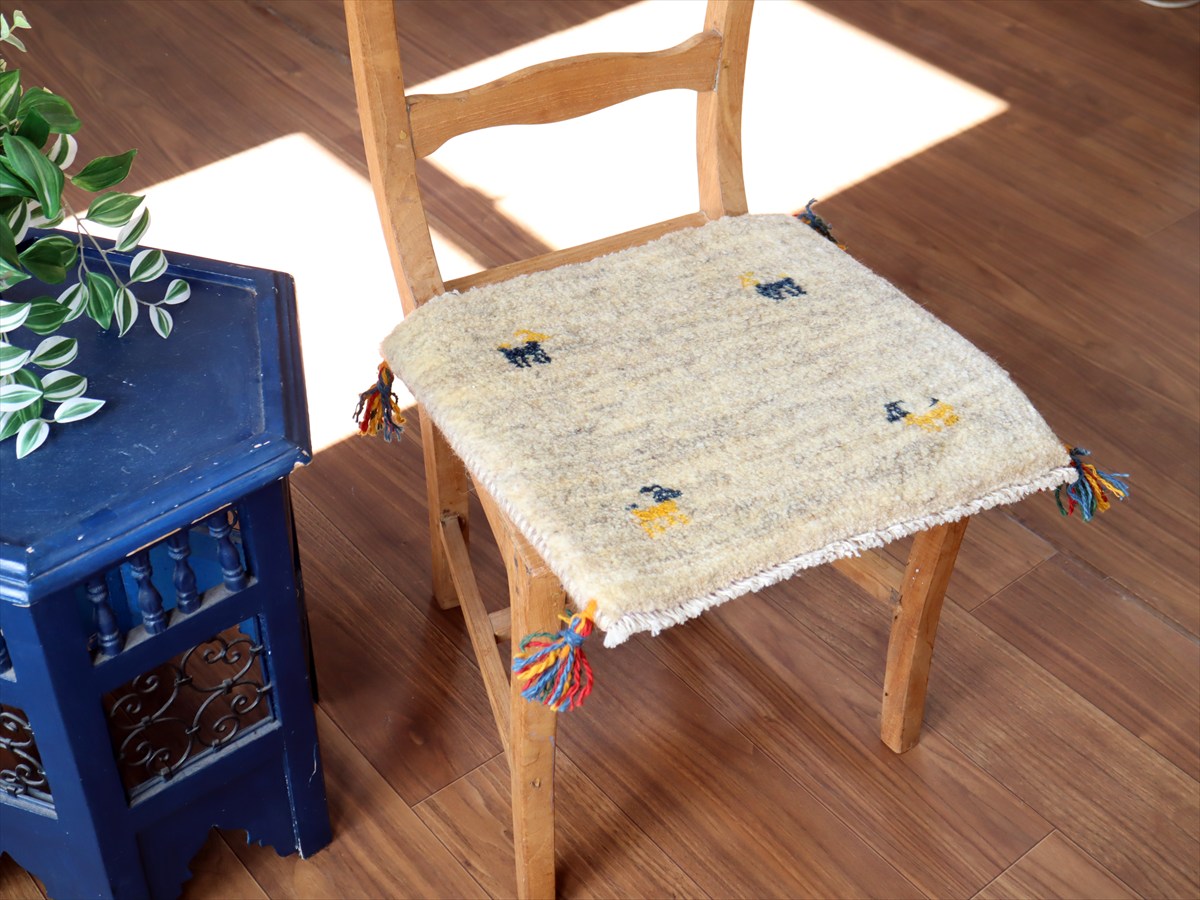 ギャッベ イラン産手織り 座布団サイズ 40×43cm ナチュラルアイボリー 動物モチーフ