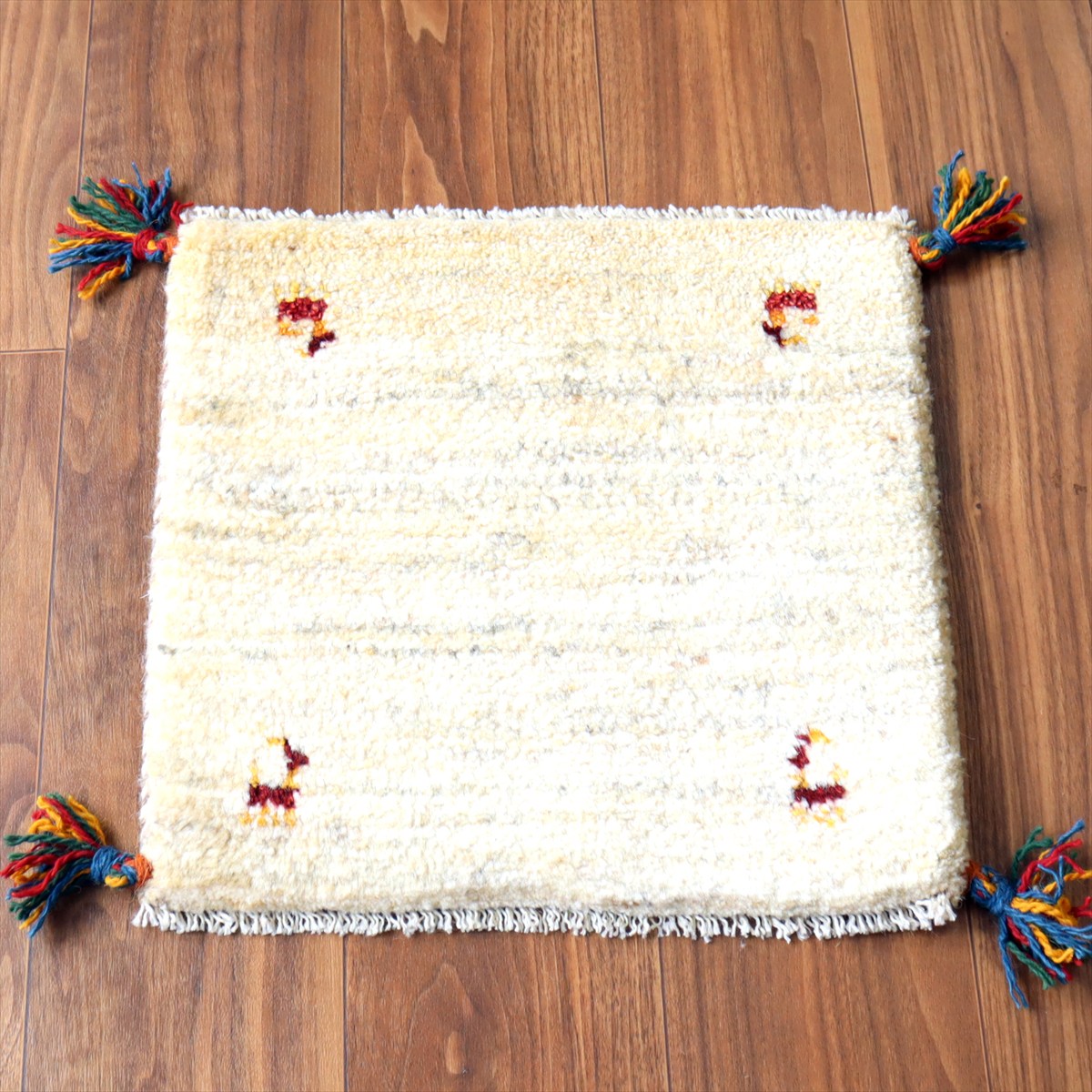 ギャッベ イラン産手織り 座布団サイズ 41×42cm ナチュラルアイボリー 動物モチーフ