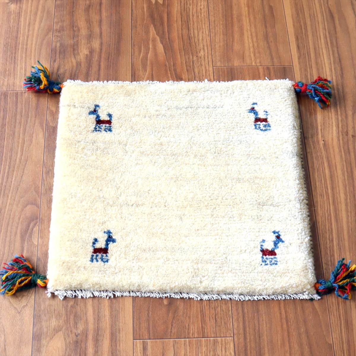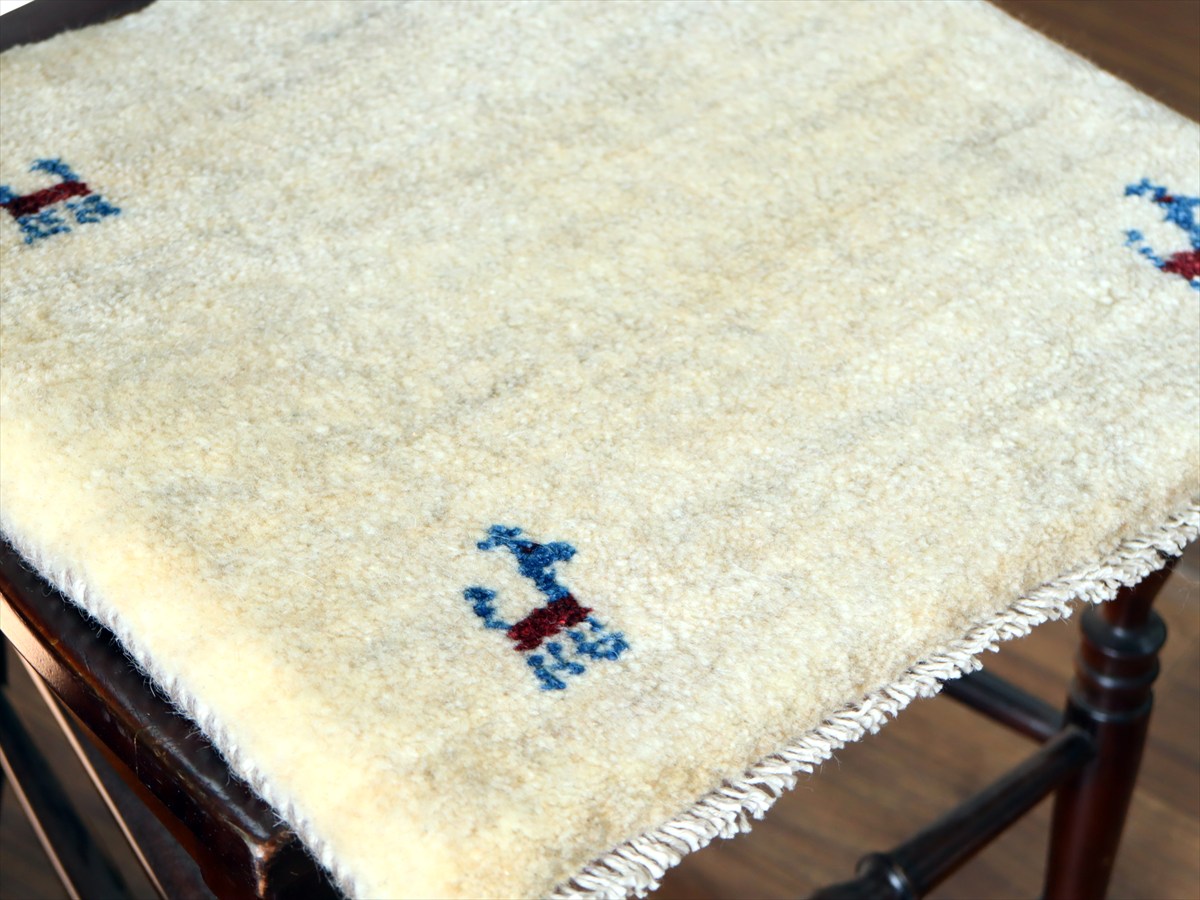 ギャッベ イラン産手織り 座布団サイズ 40×43cm ナチュラルアイボリー 動物モチーフ