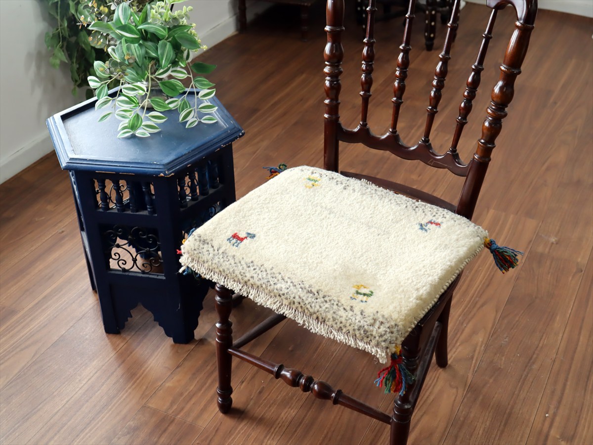 ギャッベ イラン産手織り 座布団サイズ 40×45cm ナチュラルアイボリー 動物モチーフ
